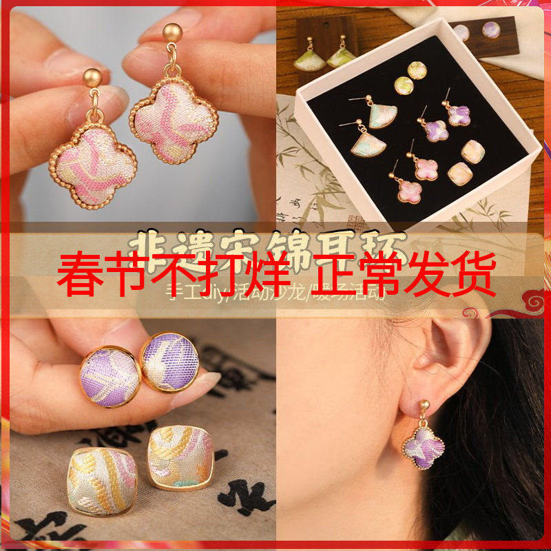 📚 新年非遗传统文化手工发夹宋锦diy材料包耳环耳钉耳坠首饰礼物