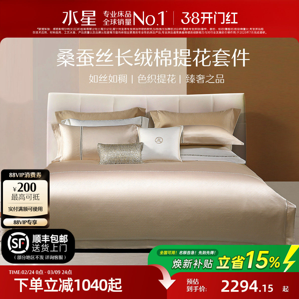 📚 水星家纺桑蚕丝四件套轻奢提花居家套件双人家用床单被套高端床品