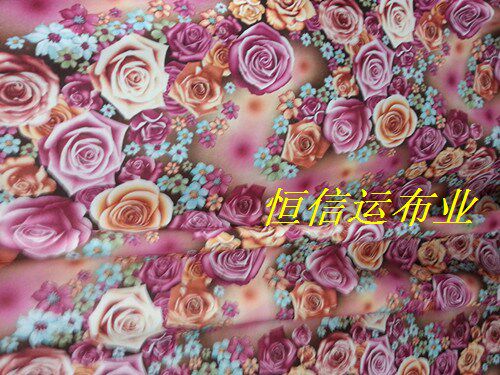 📚 冰丝印花布料 四面弹力印花 大摆裙时装布 衬衣料玫瑰花朵印花布