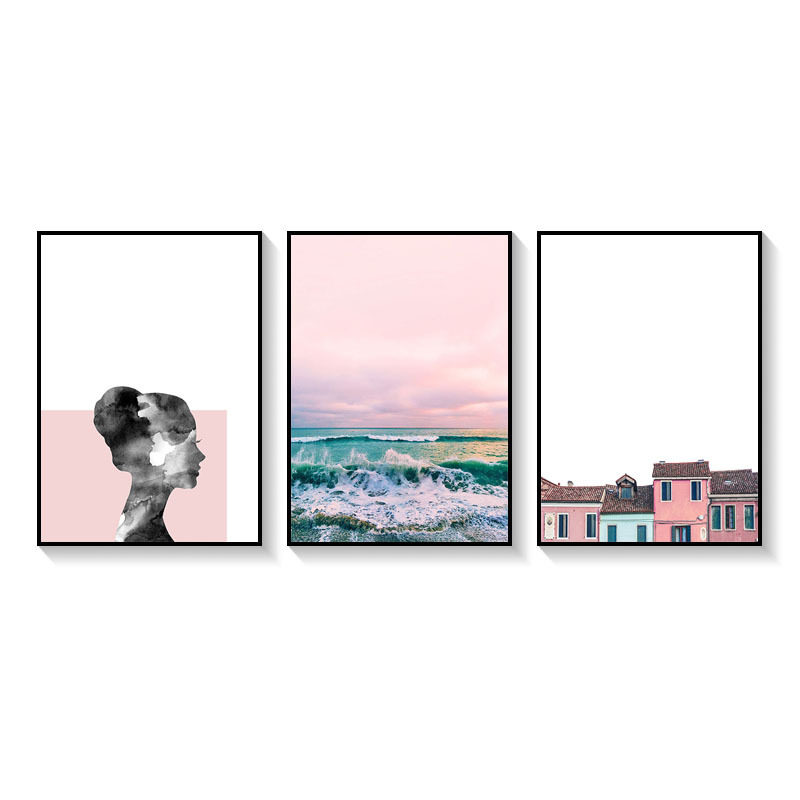 📚 晚霞风景北欧少女心装饰画客厅墙画女生房间卧室壁画玄关餐厅挂画