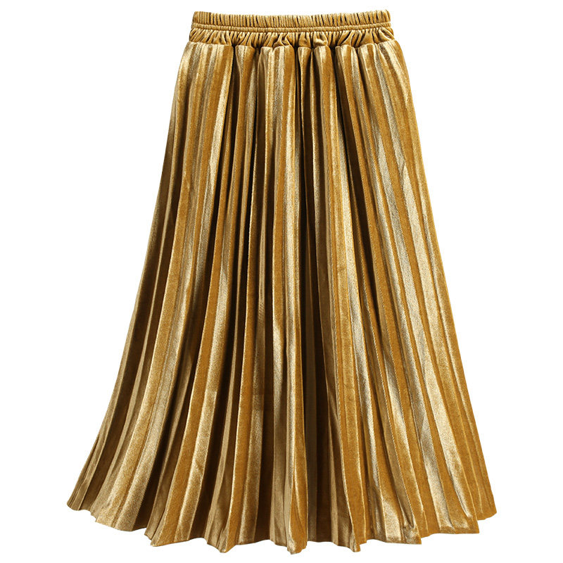 💖面料上,金丝绒的质感真的超级棒!摸上去手感超级柔软,穿在身上仿佛是春天的微风拂过。而且这款裙子还有百褶的设计,一摆一摆的,超级有少女感。