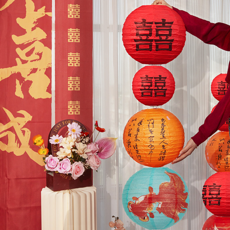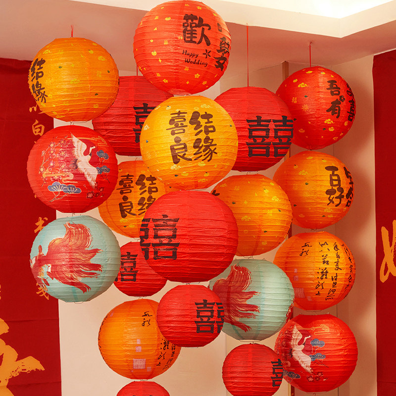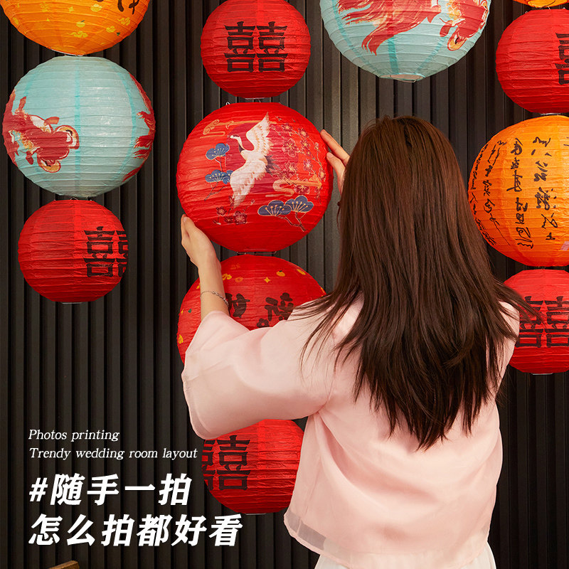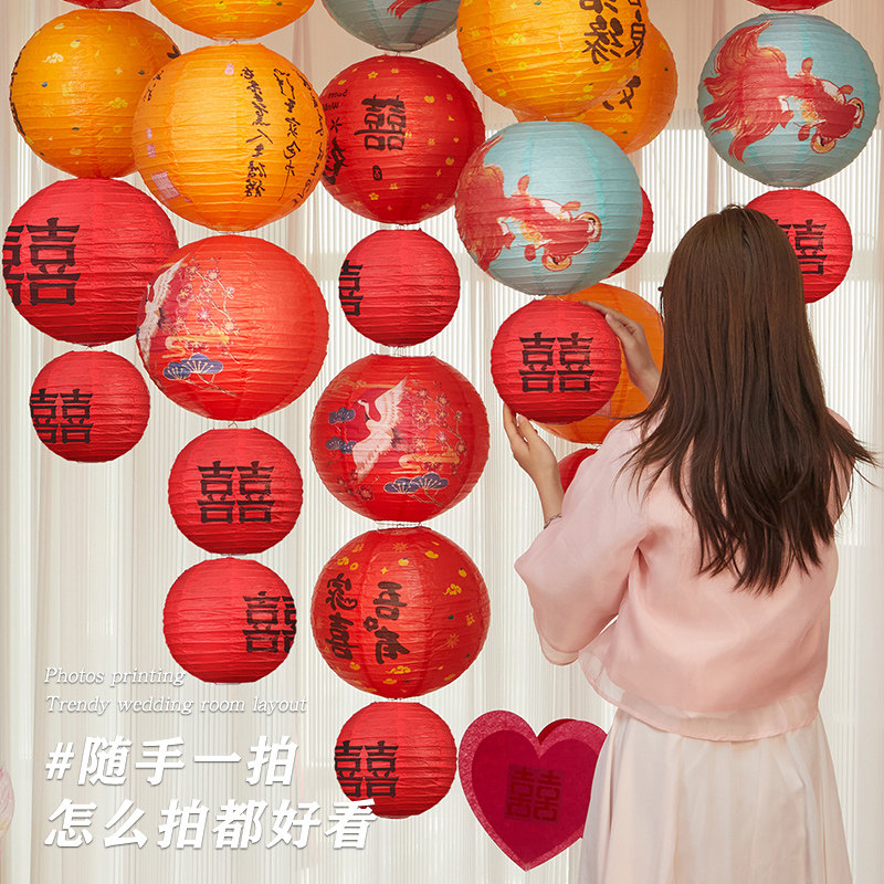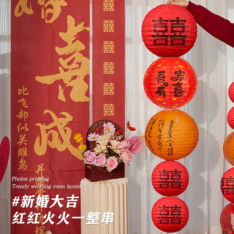 📚 结婚喜字纸灯笼瀑布囍字婚房装饰男女方布置套装客厅卧室房间婚礼