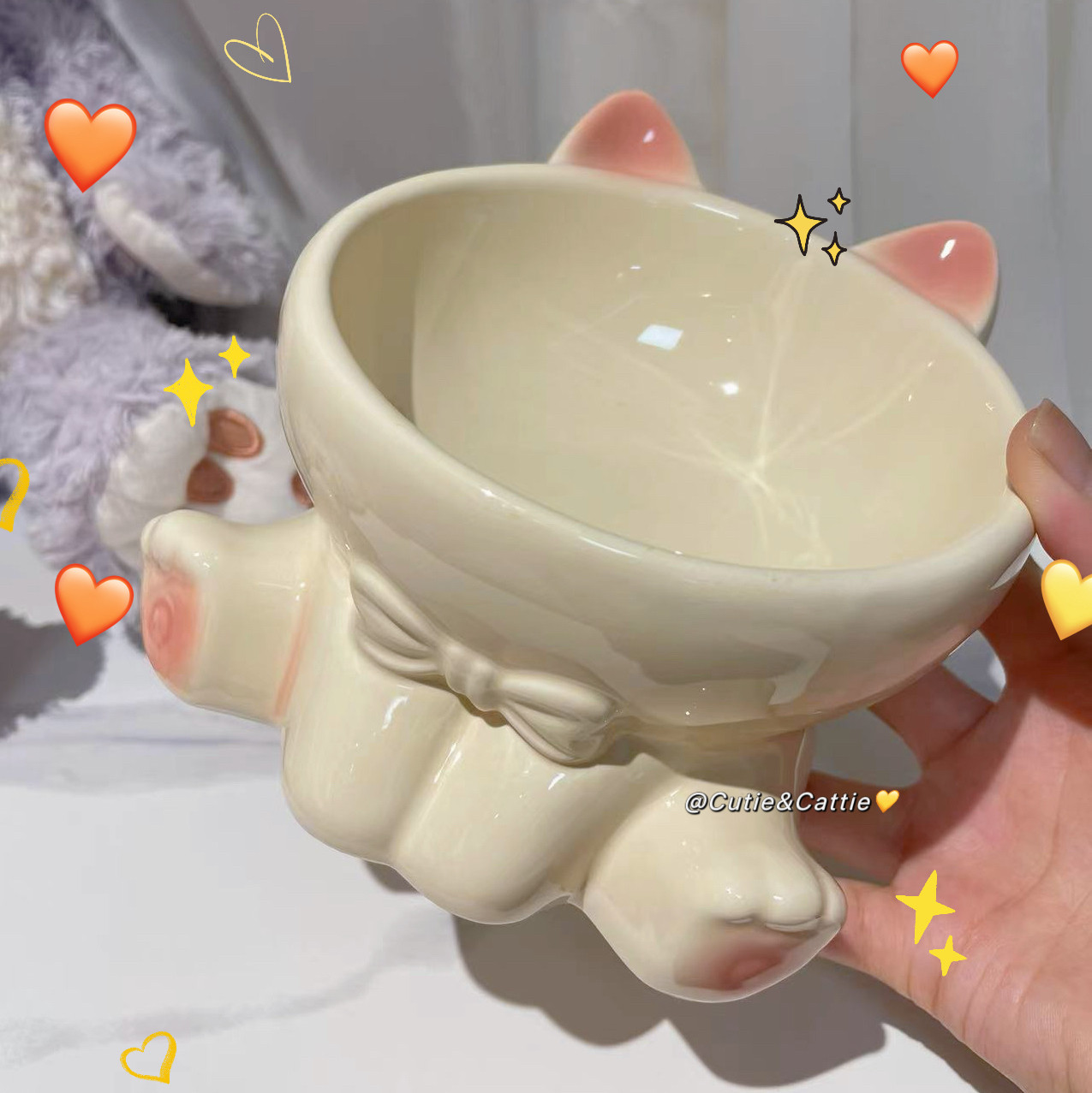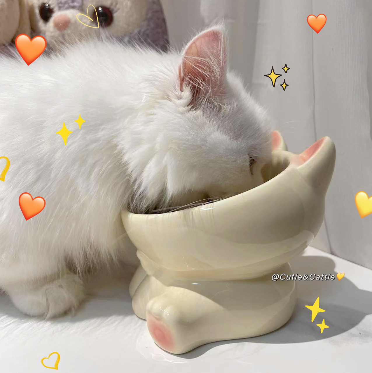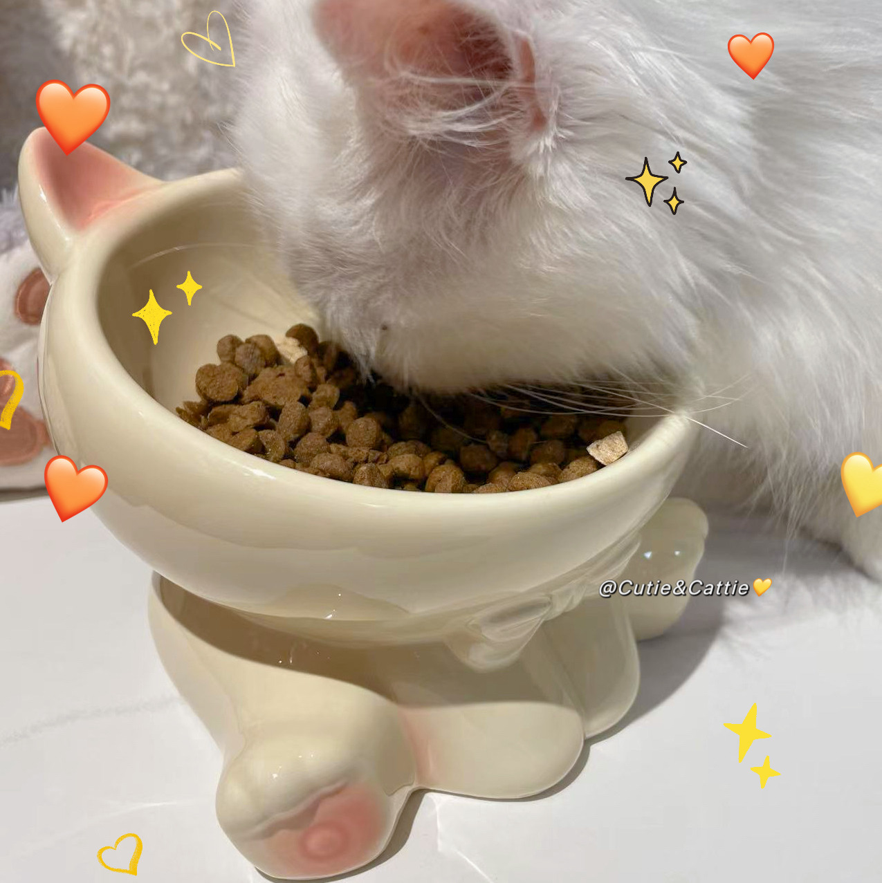 📚 猫碗陶瓷高脚保护颈椎大口径可爱猫食盆斜口水碗猫咪饭碗狗碗狗盆