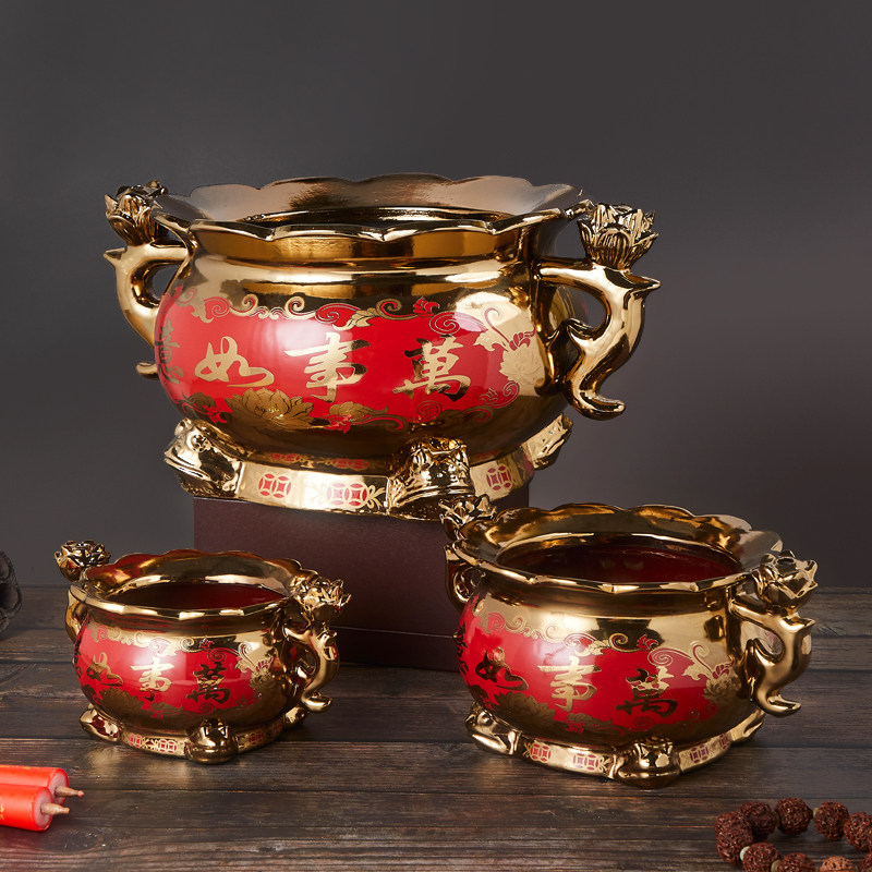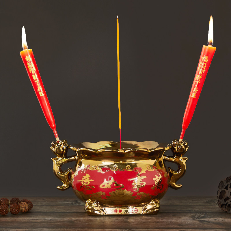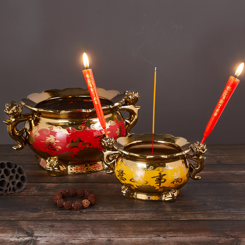 📚 钛金金砂陶瓷莲花造型香炉寺庙佛堂家用烧香供奉仙佛心经香具摆件