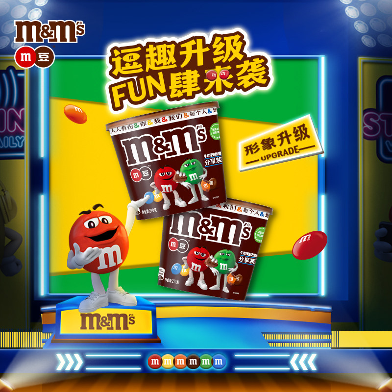 📚 M&M’S牛奶夹心巧克力豆270g*1桶M豆儿童糖果小零食吃货纯可可脂