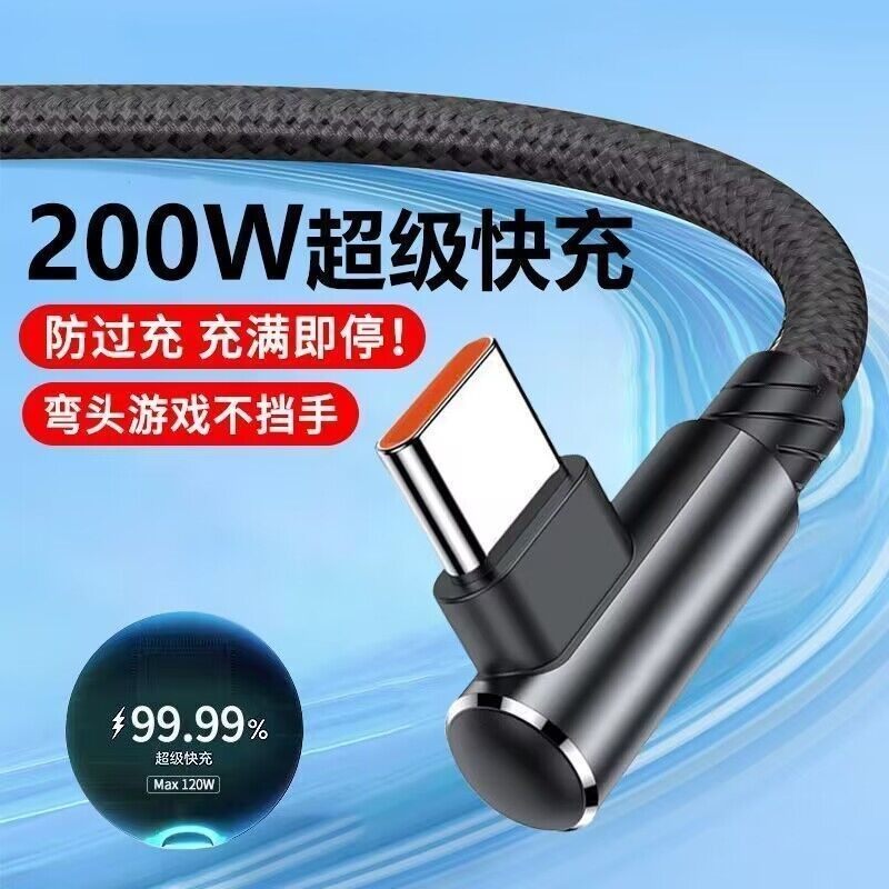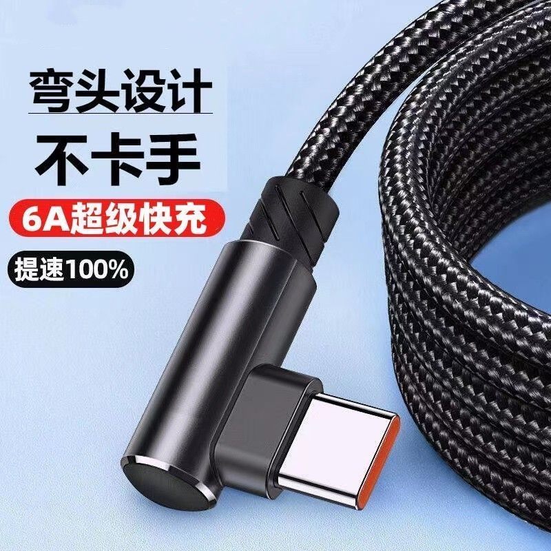 📚 120W超级快充Type-c弯头编织数据线适用于华为mate70/60手机p20p30p40mate50nova7prop80游戏专用充电线