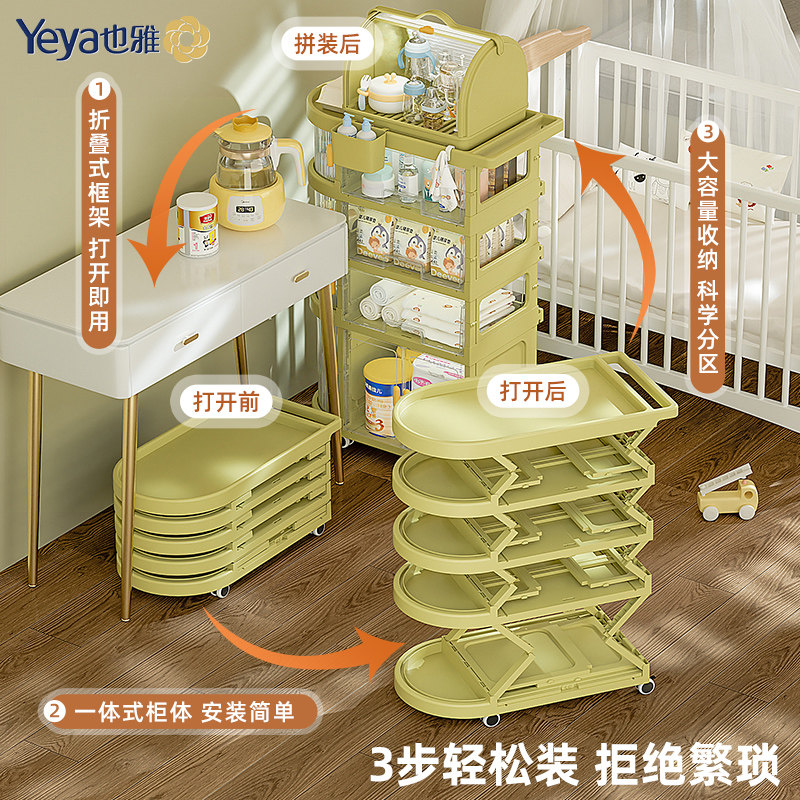 📚 宝宝用品置物架婴儿喂养台收纳柜小推车卧室床头可移动奶瓶收纳架