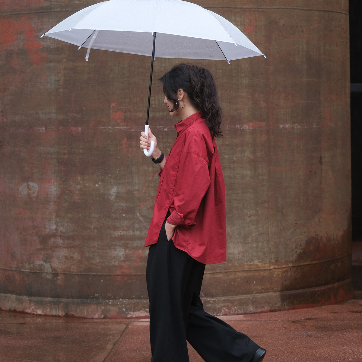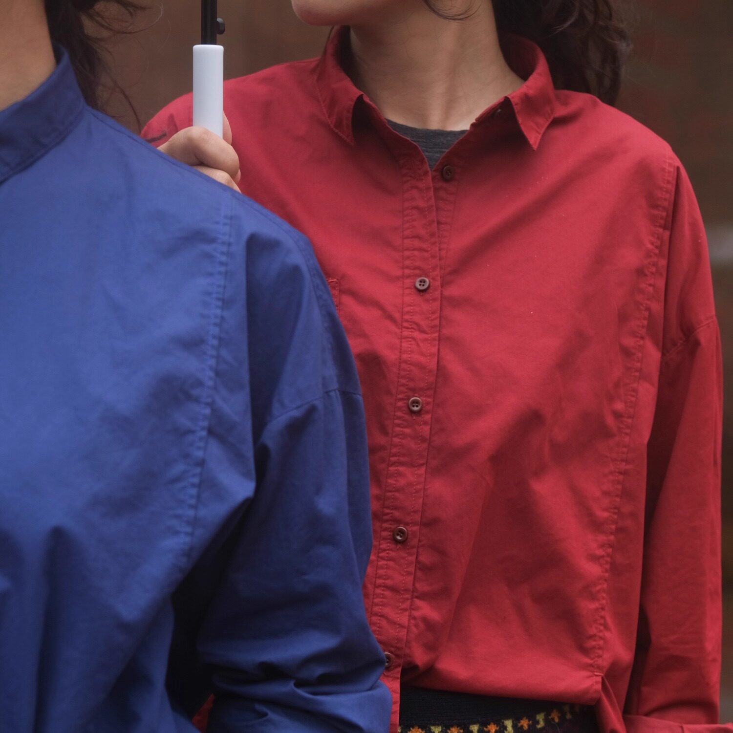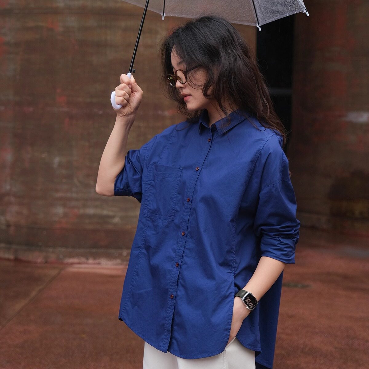 📚 远家纯棉宽松小翻领休闲长袖衬衫复古钴蓝酒红叠穿衬衣LF5892限量