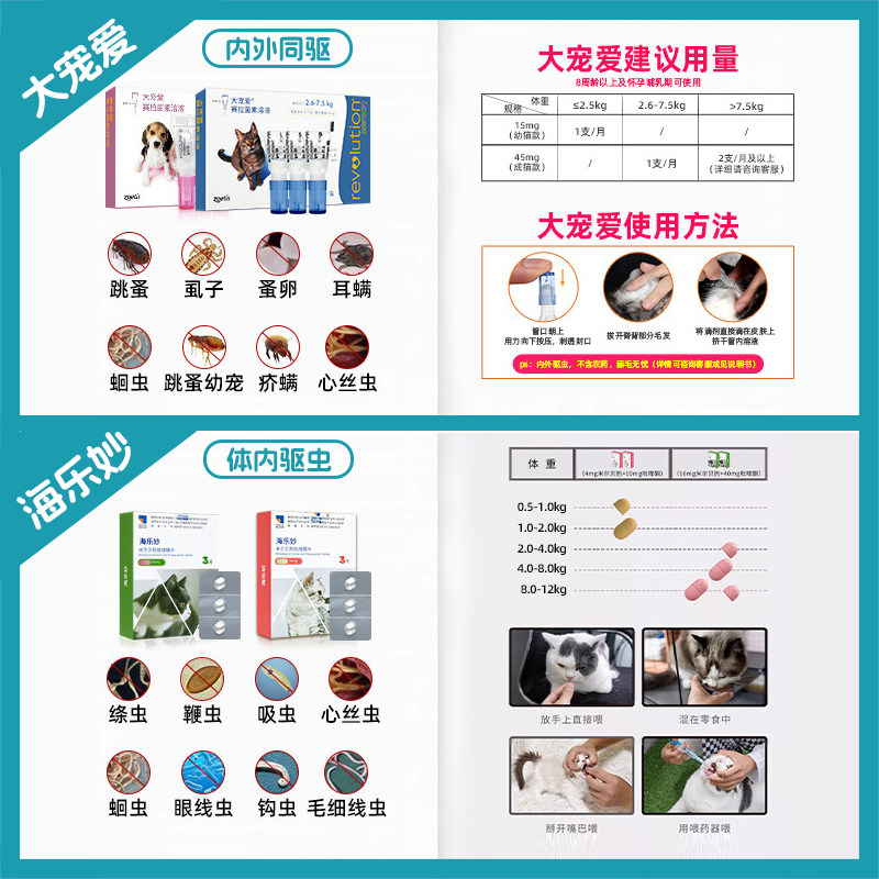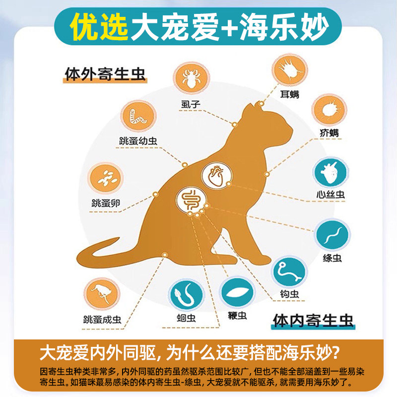 📚 大宠爱猫驱虫猫咪体内外一体驱虫药成猫幼猫跳蚤耳螨药海乐妙套餐