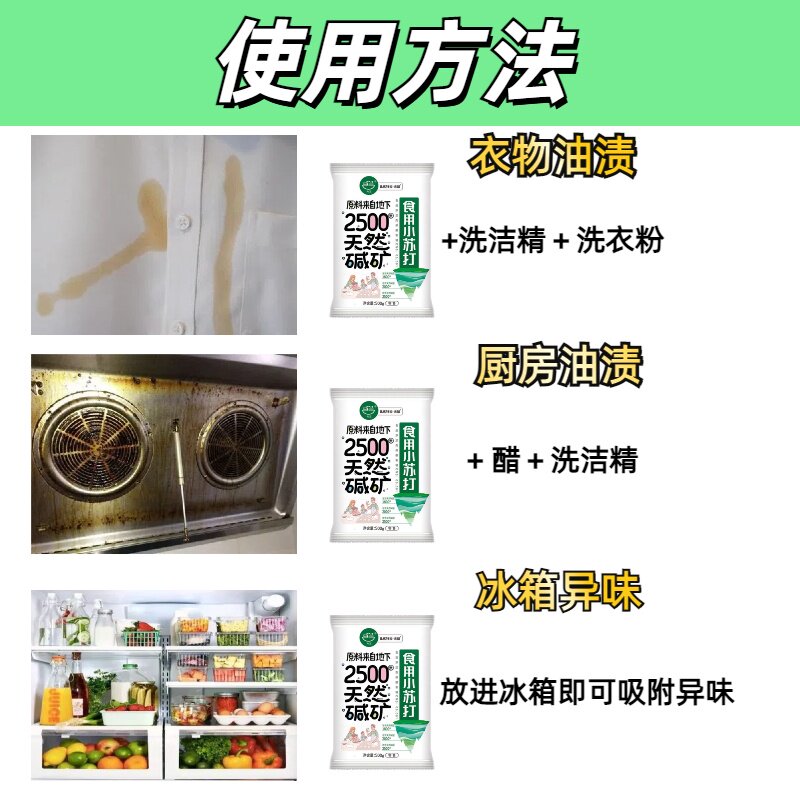 📚 小苏打食用小苏打食品级清洁去污烘厨房多功能碳酸氢钠家用天然碱