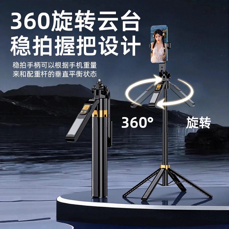 📚 AI智能跟拍云台】2026新款人脸跟踪自拍杆360全自动旋转旅游便携拍照Vlog拍摄手机直播三脚架防抖稳定器补光
