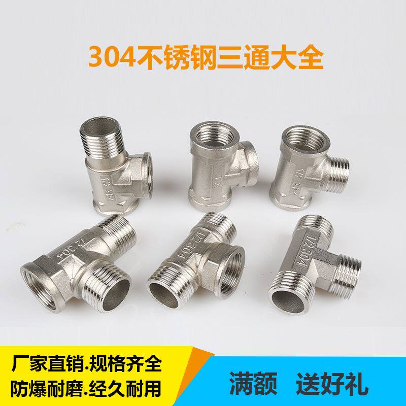 📚 304不锈钢三通4分水管接头三通弯头双公螺丝直接4分外外内连接头
