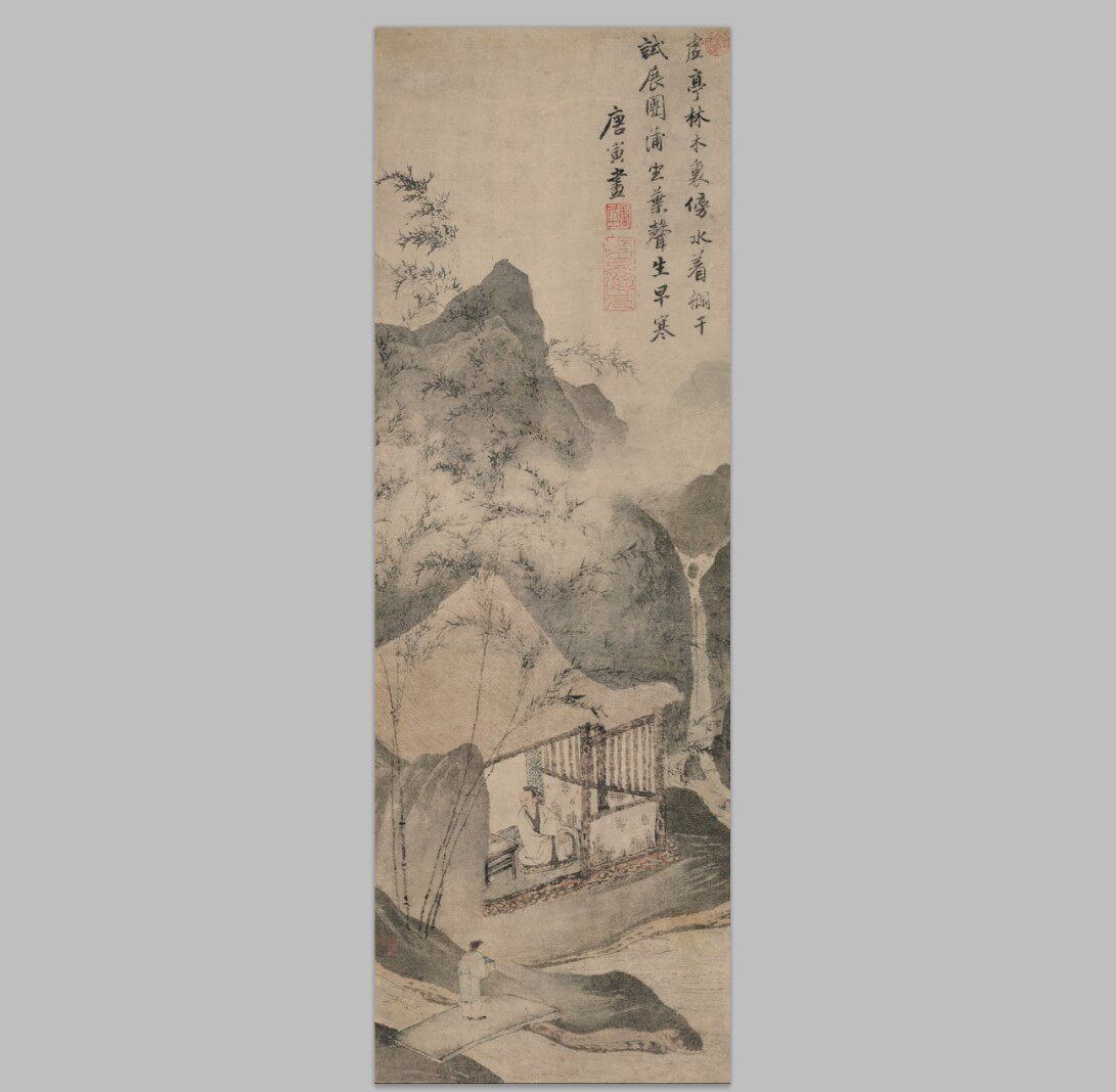 📚 明 唐寅 草屋蒲团纸本国画名家字画心芯装饰高清微喷打印复制
