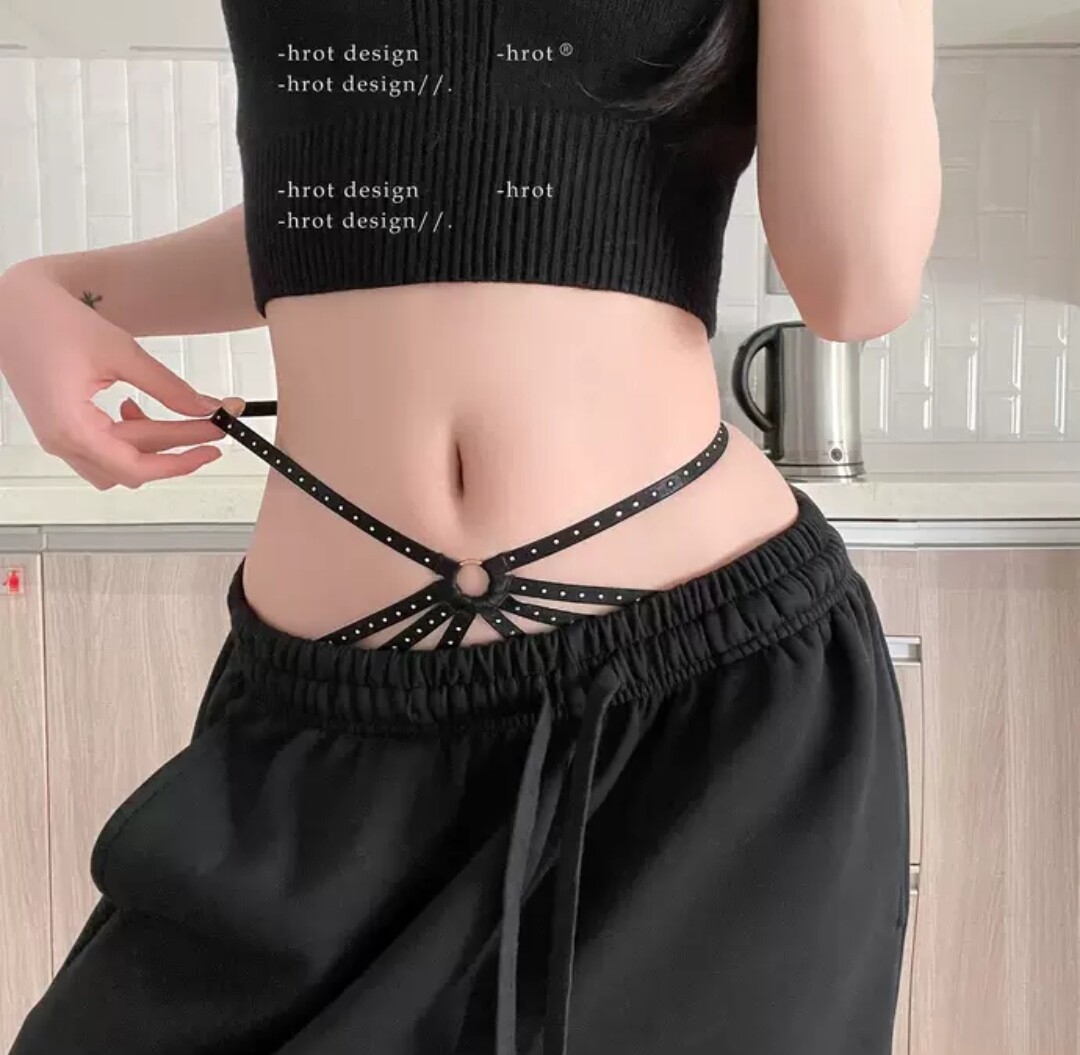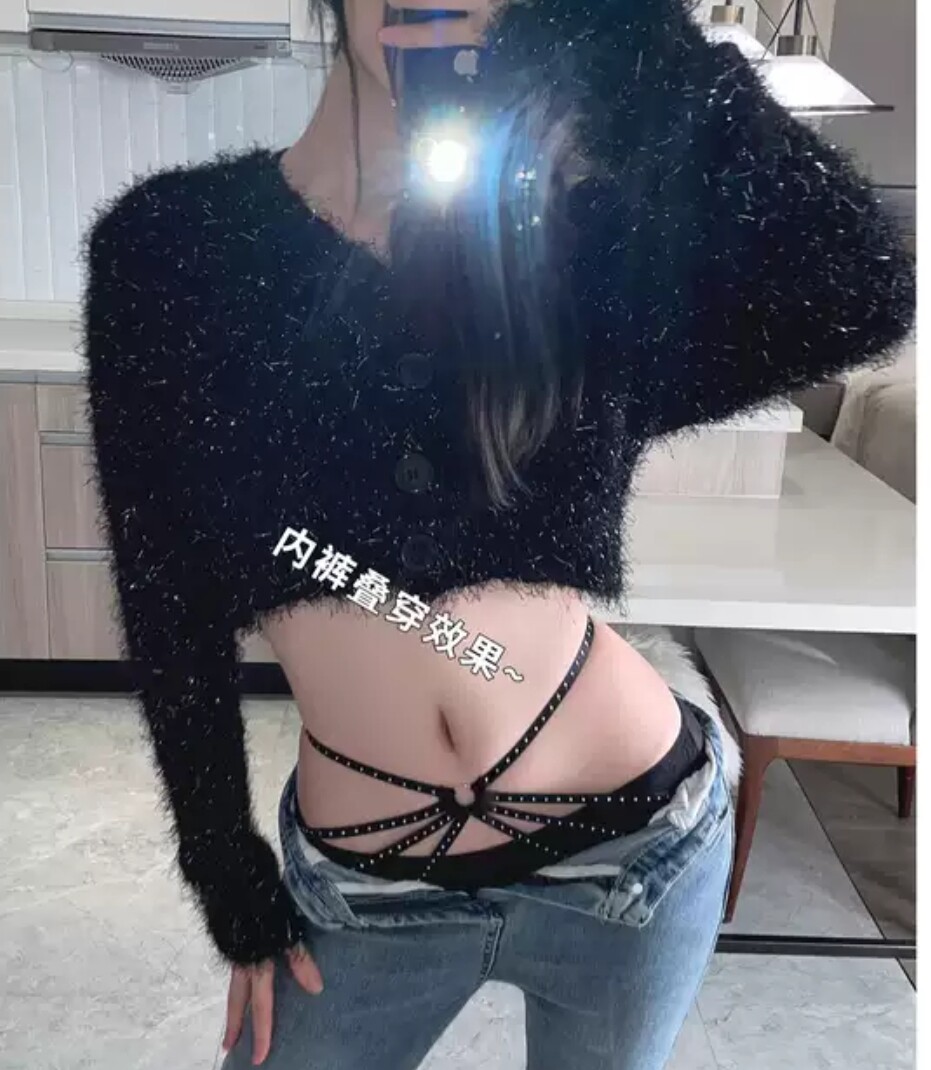 📚 交错魅影*蕾丝烫钻纯欲性感高级露腰性感外穿内裤女高腰绑带三角