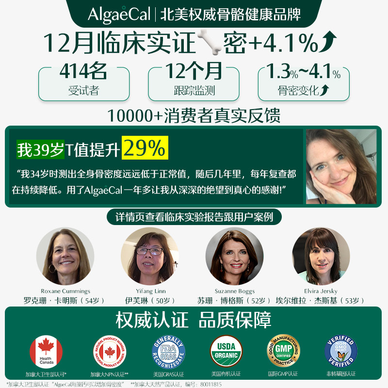 📚 AlgaeCal养骨瓶升级版海藻钙全食矿物质镁维生素DK2骨骼营养瓶6瓶