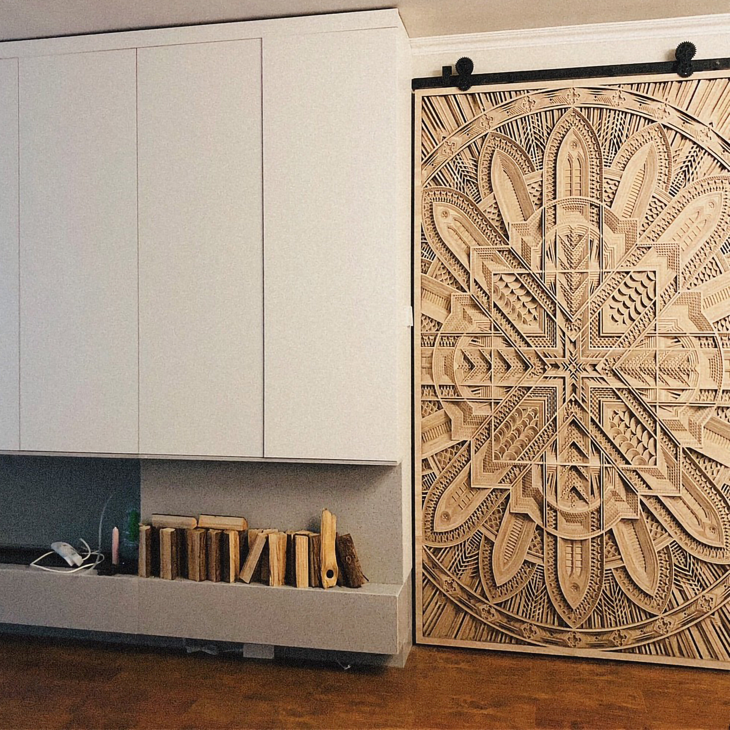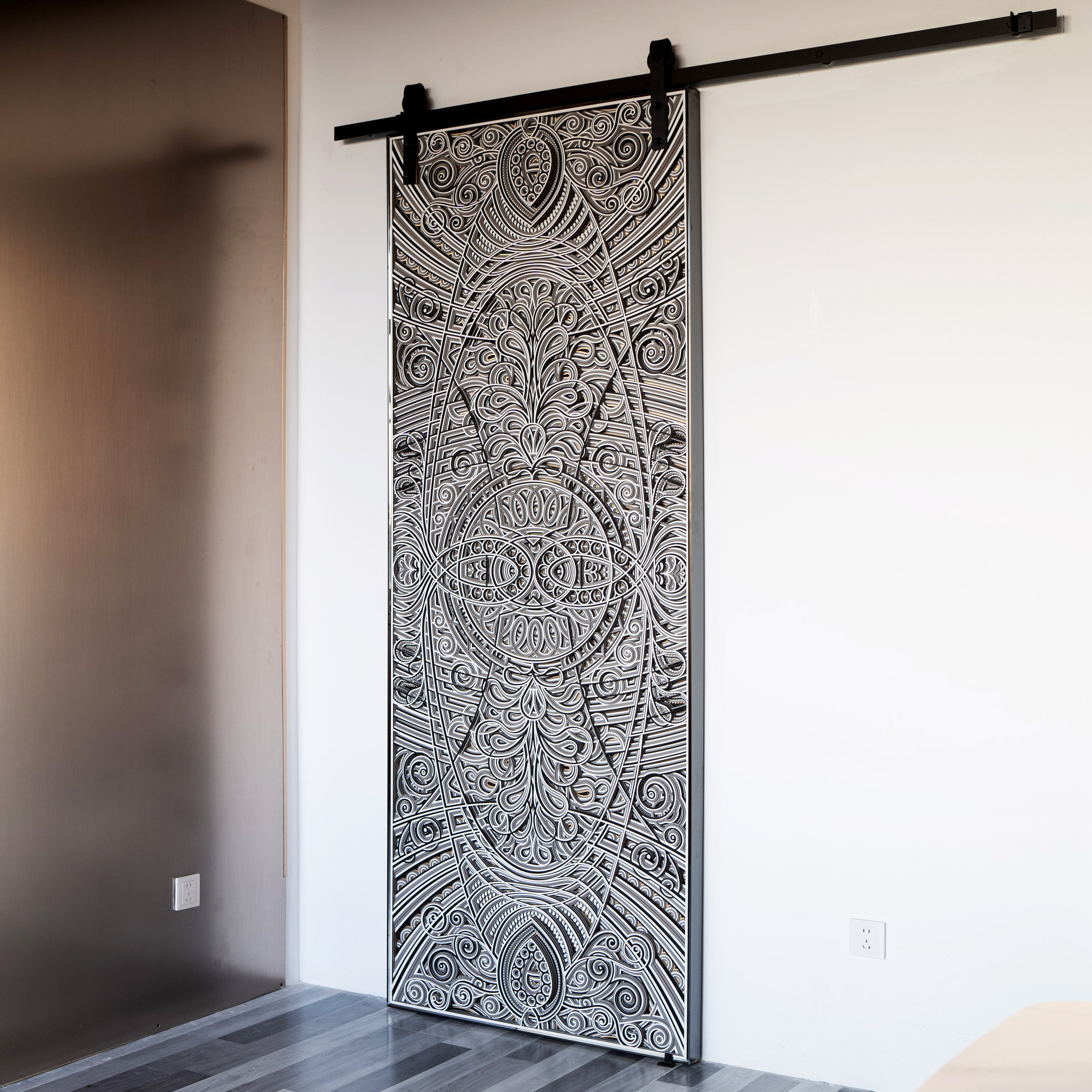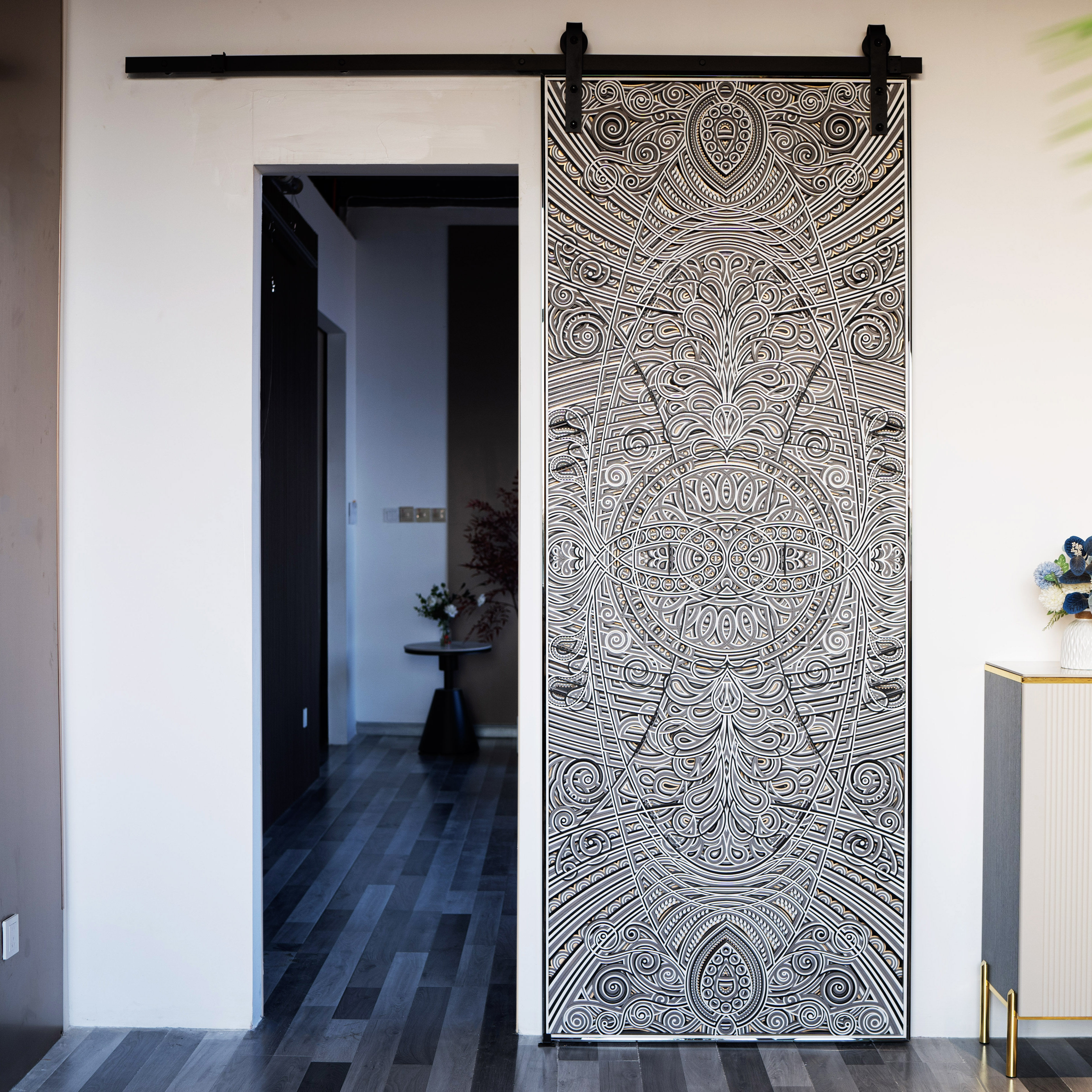 📚 梯木叠雕现代极简谷仓门移门隐形门幽灵门定制衣帽间卫生间推拉门