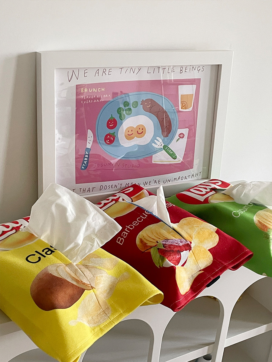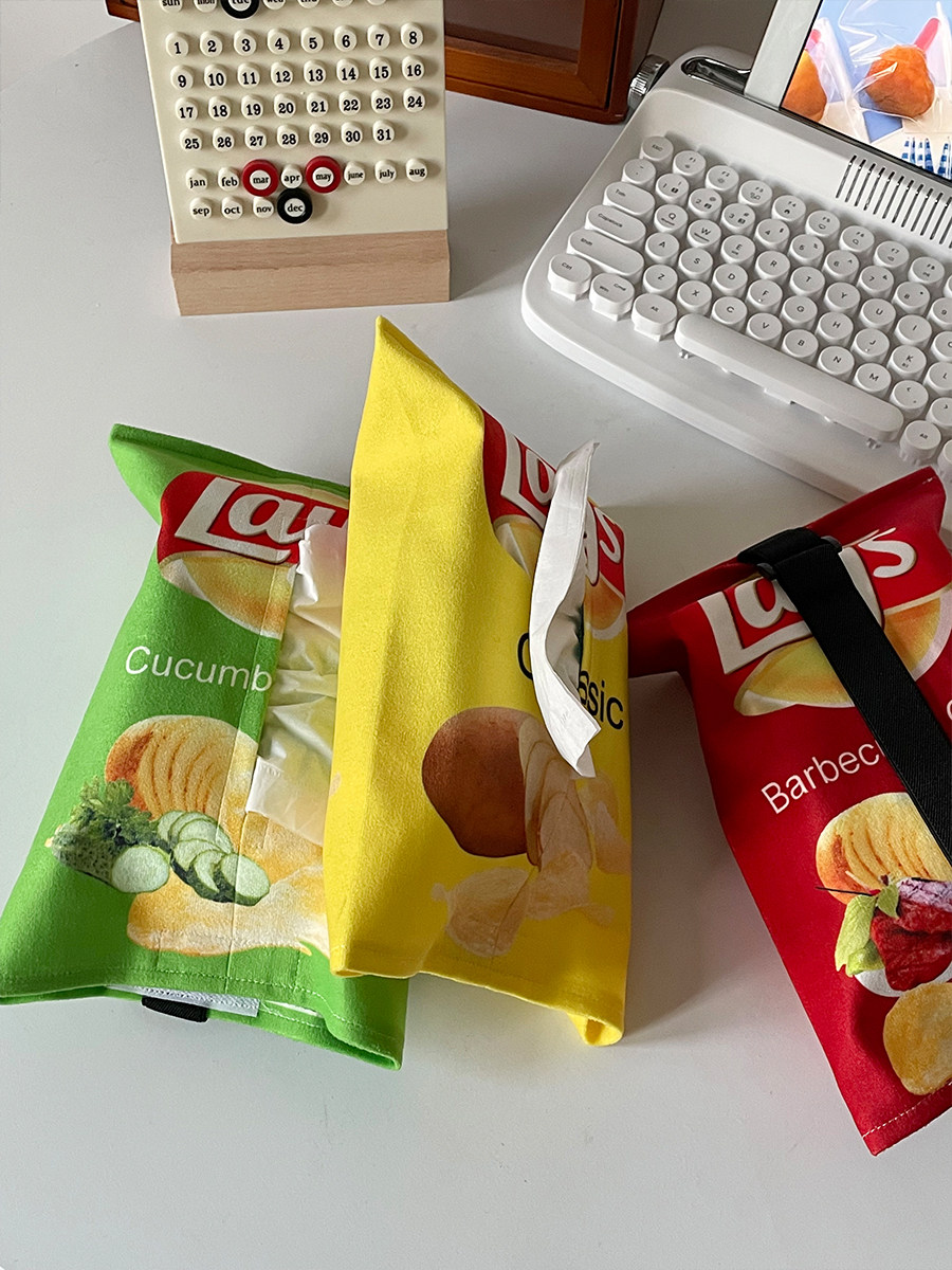 📚 ins创意绒布薯片抽纸盒可悬挂厨房客厅家用可爱纸巾包收纳盒车载