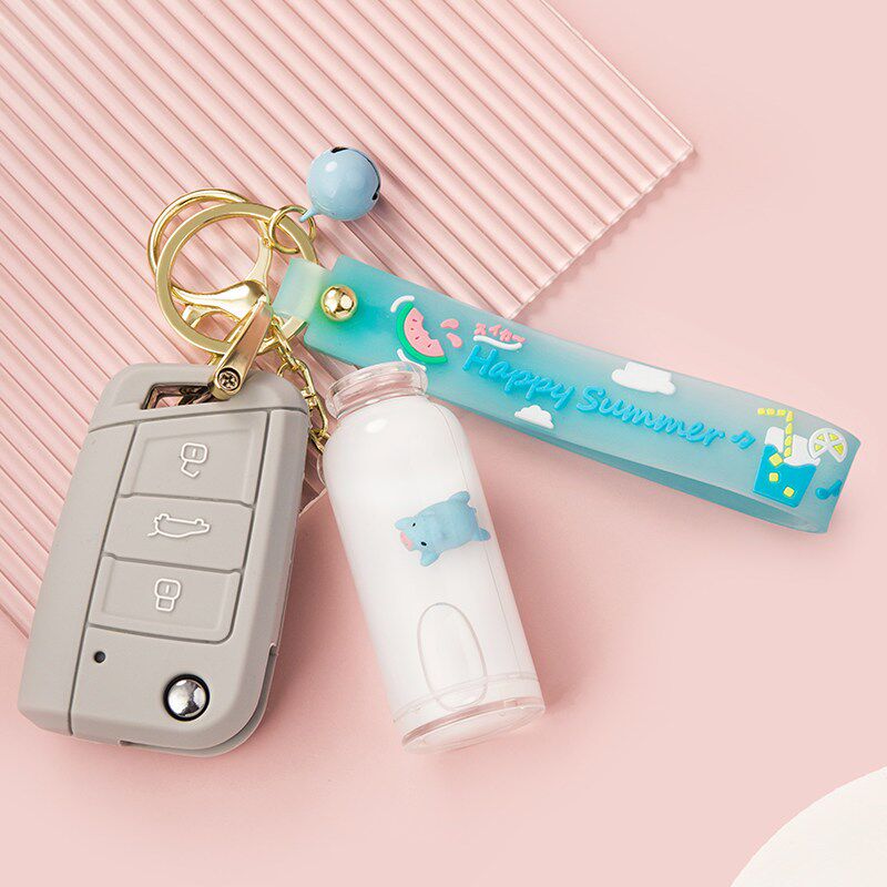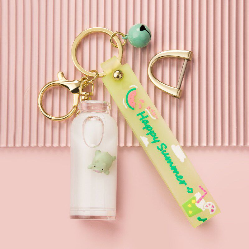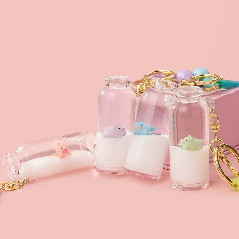 📚 快速发货小猪漂浮瓶钥匙扣牛奶油瓶汽车链K男女卡通书包挂饰网红