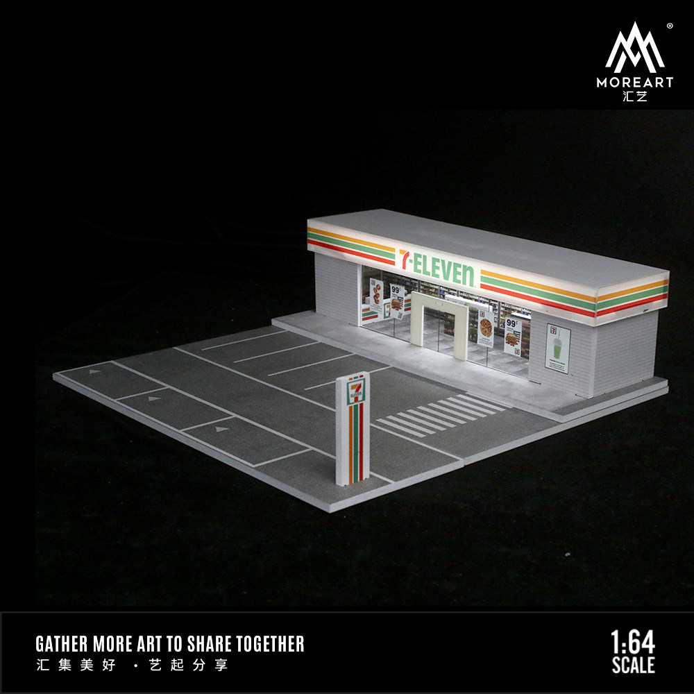 📚 壹号站台|汇艺 1:64 711 罗森便利店灯光版拼装场景模型收藏