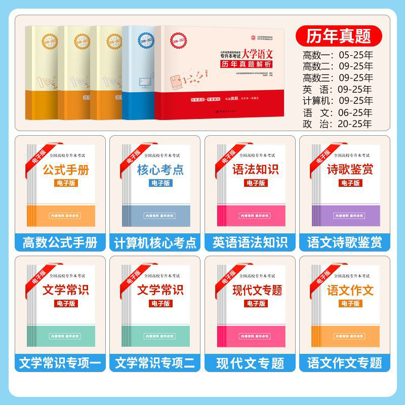 📚 新版2026山东省专升本考试历年真题试卷解析高等数学一二三计算机大学语文英语政治师大教育专升本复习资料山东专升本卷子