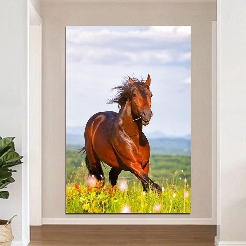 📚 骏马装饰画一匹马吃草的马简约居家装饰画宿舍儿童房壁画动物贴画