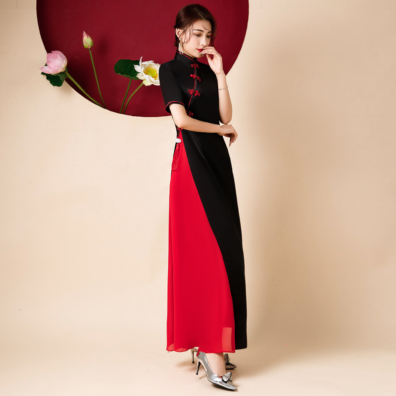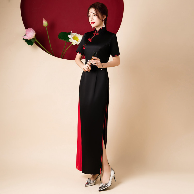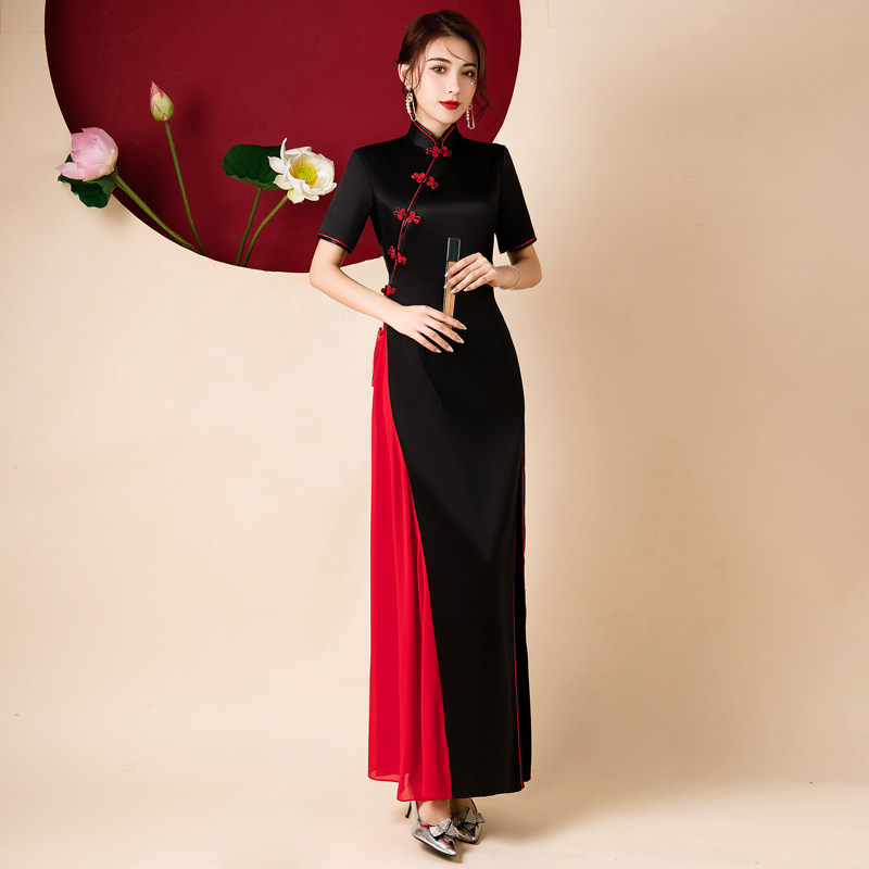 📚 走秀旗袍2025新款长款演出服黑色复古高端连衣裙中国风表演舞蹈服