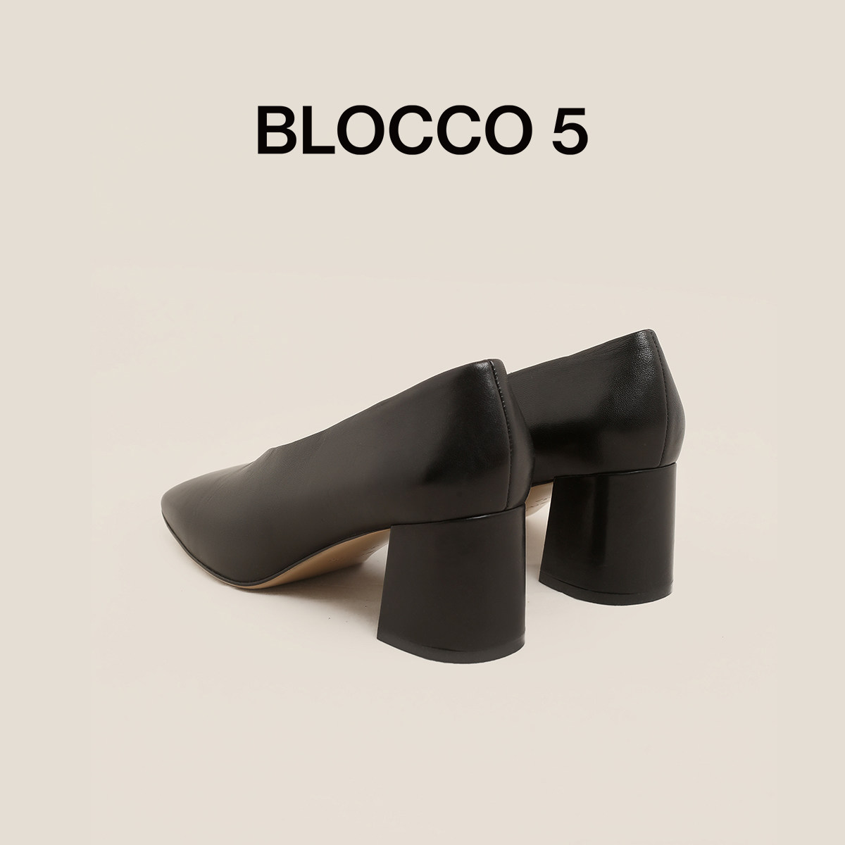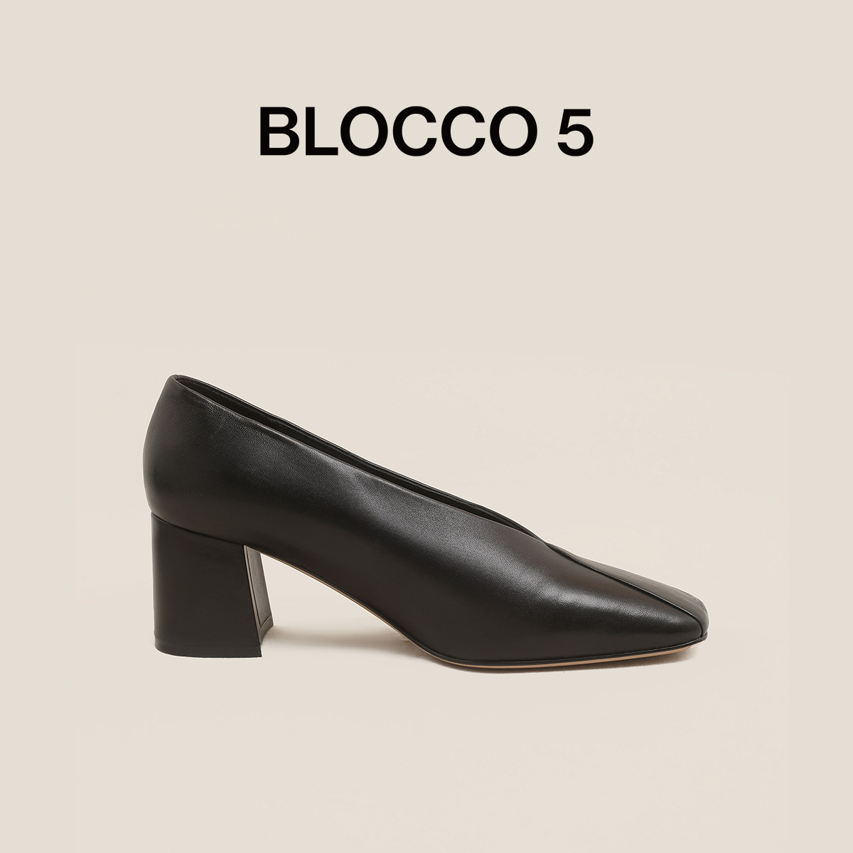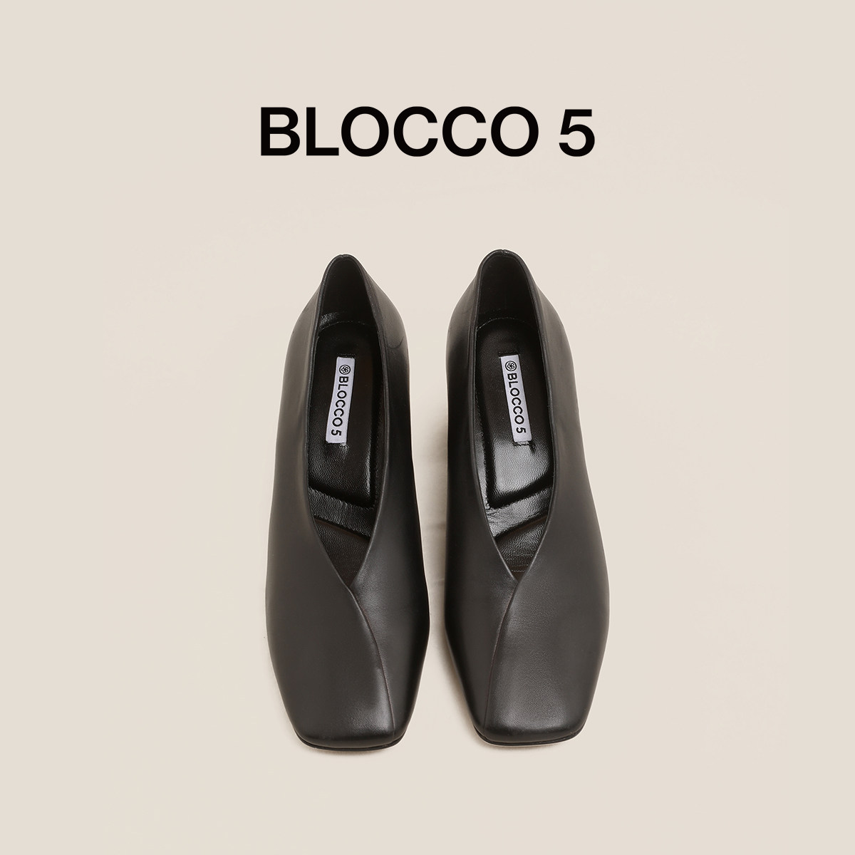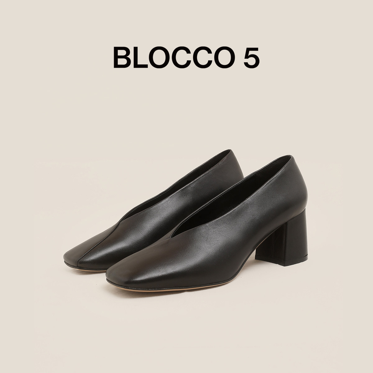 📚 陈紫haha同款BLOCCO5女鞋春季柔软羊皮拼接粗跟通勤高跟鞋