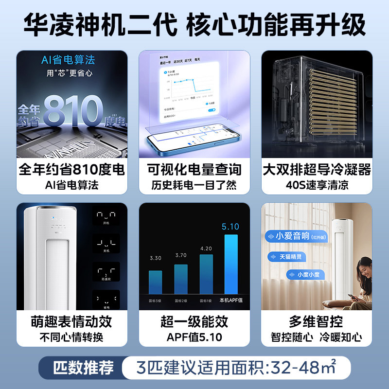 📚 华凌空调神机二代3匹柜机新一级双排神机超级省电智能变频72HE1Ⅱ