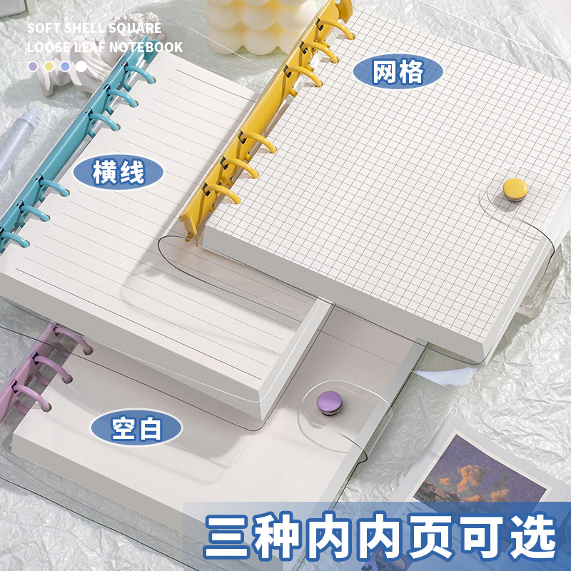 📚 pvc涂鸦方形活页本软皮笔记本子ins高颜值超厚日记手账本