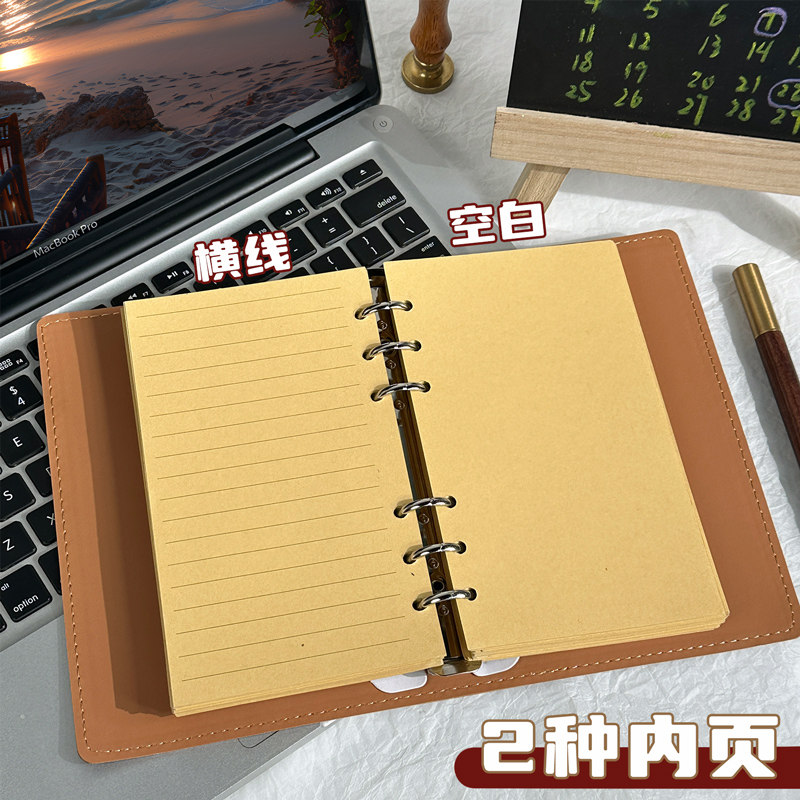 📚 a6牛皮纸活页笔记本本子复古便携式活页本软皮简约办公商务记事本高颜值空白手帐本可拆卸大容量日记本