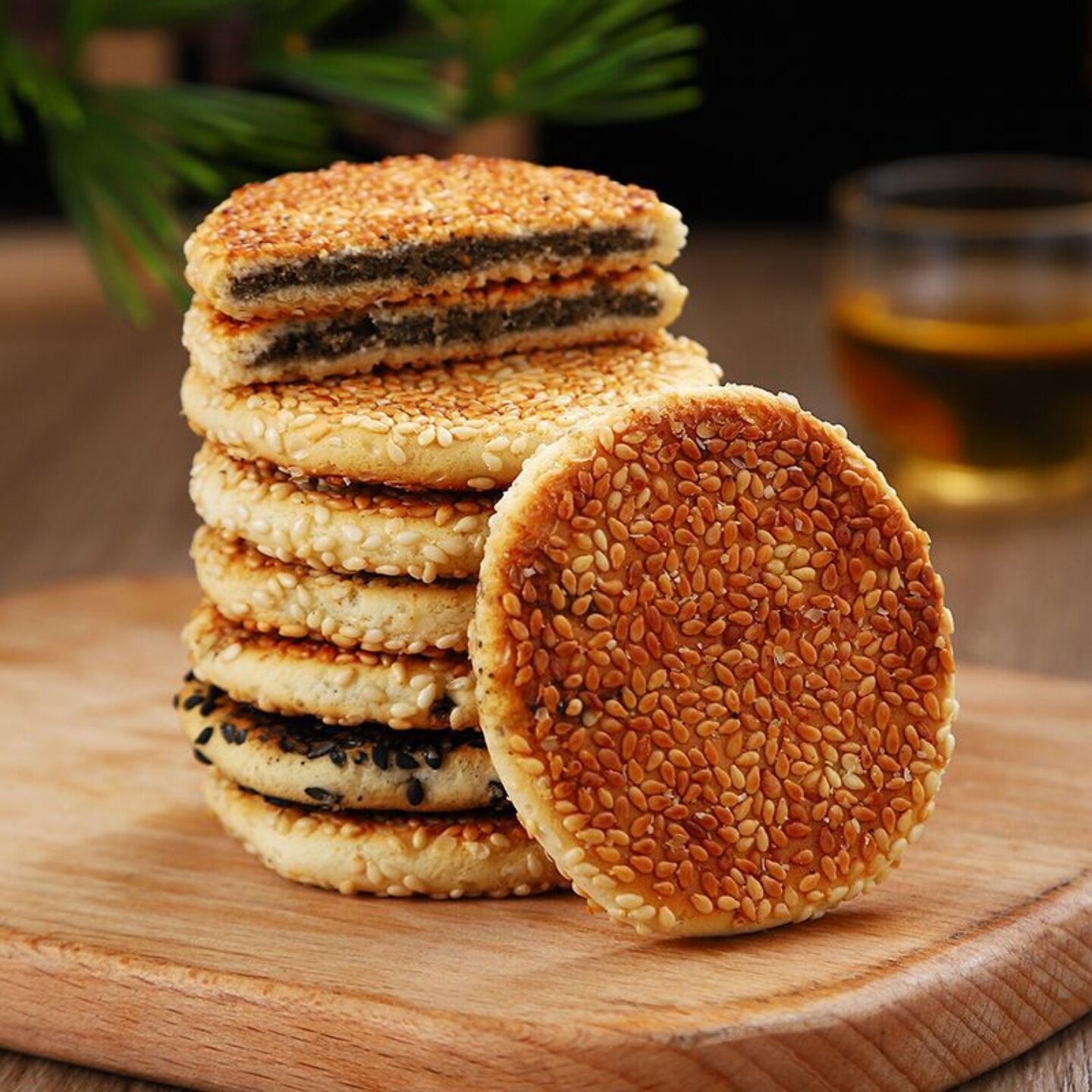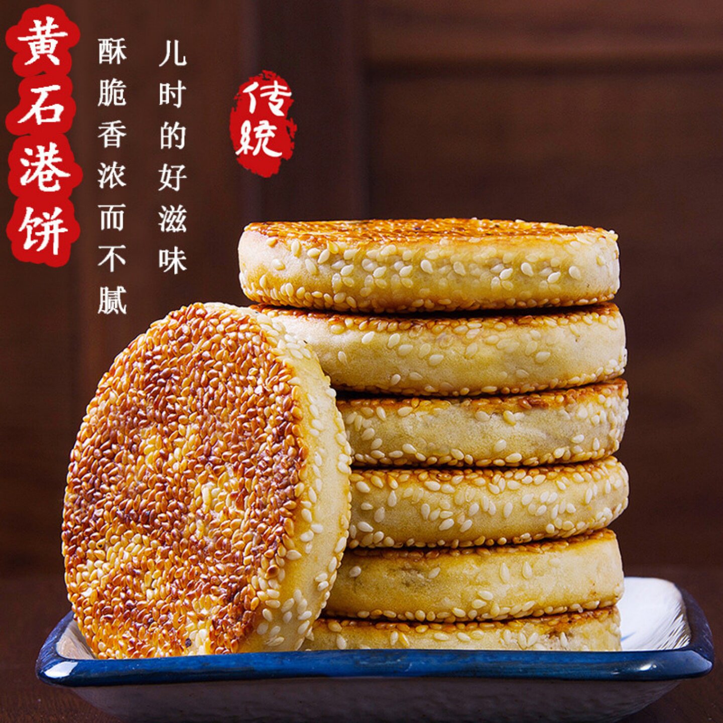 📚 正宗黄石香脆港饼薄脆零食老式传统麻饼芝麻饼独立包装黑白芝麻味