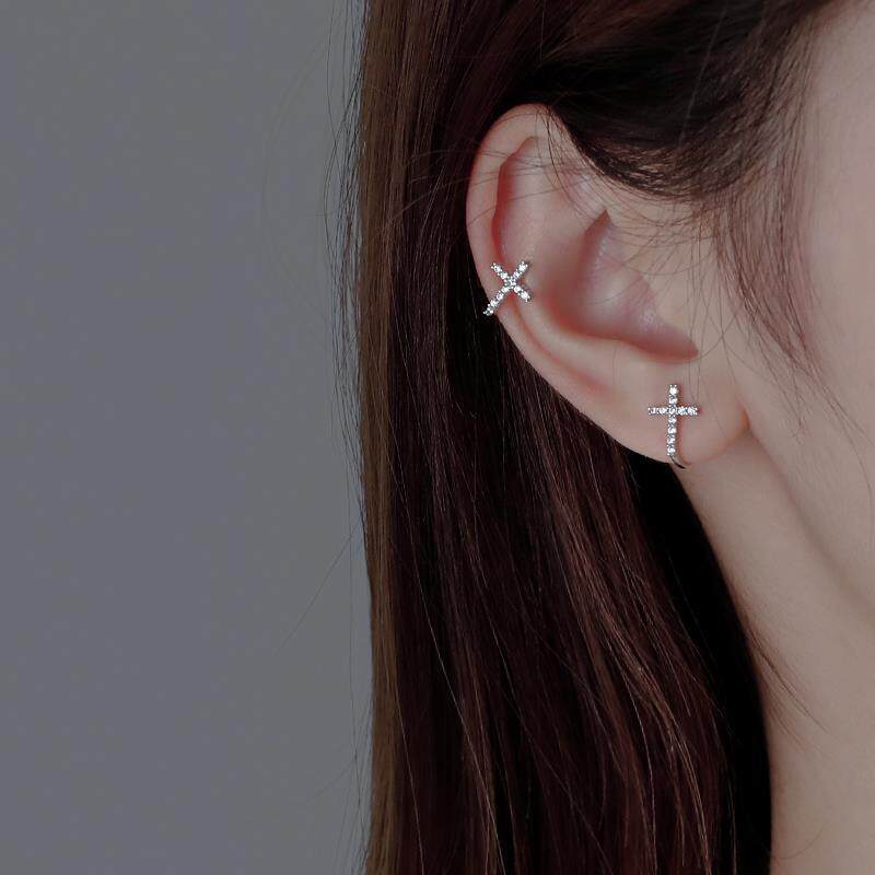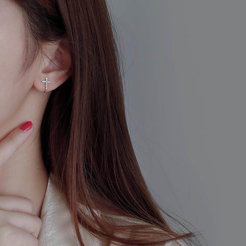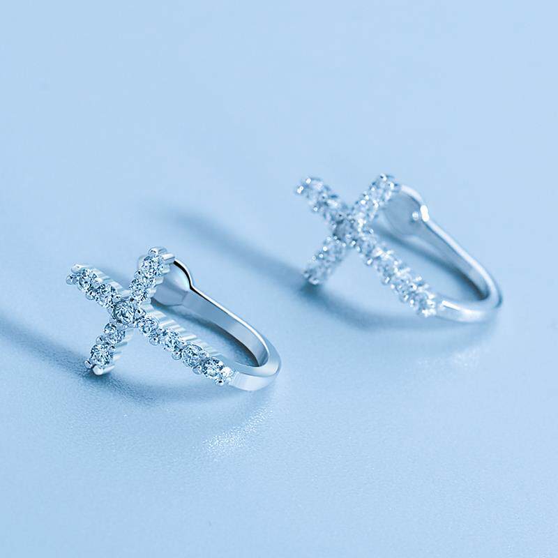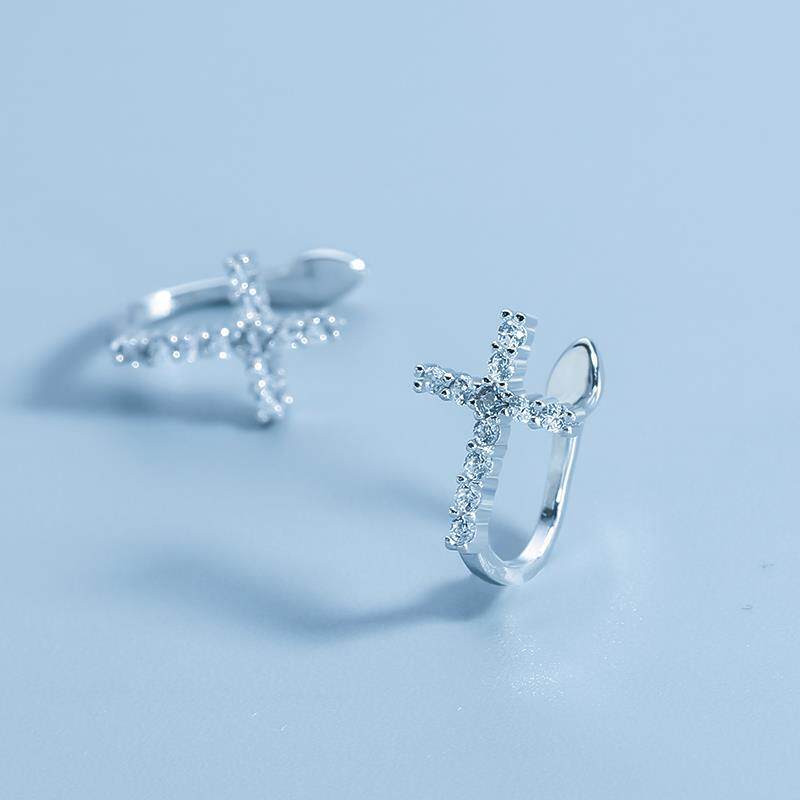 📚 925纯银十字架耳夹女简约个性无耳洞耳环时尚气质耳饰