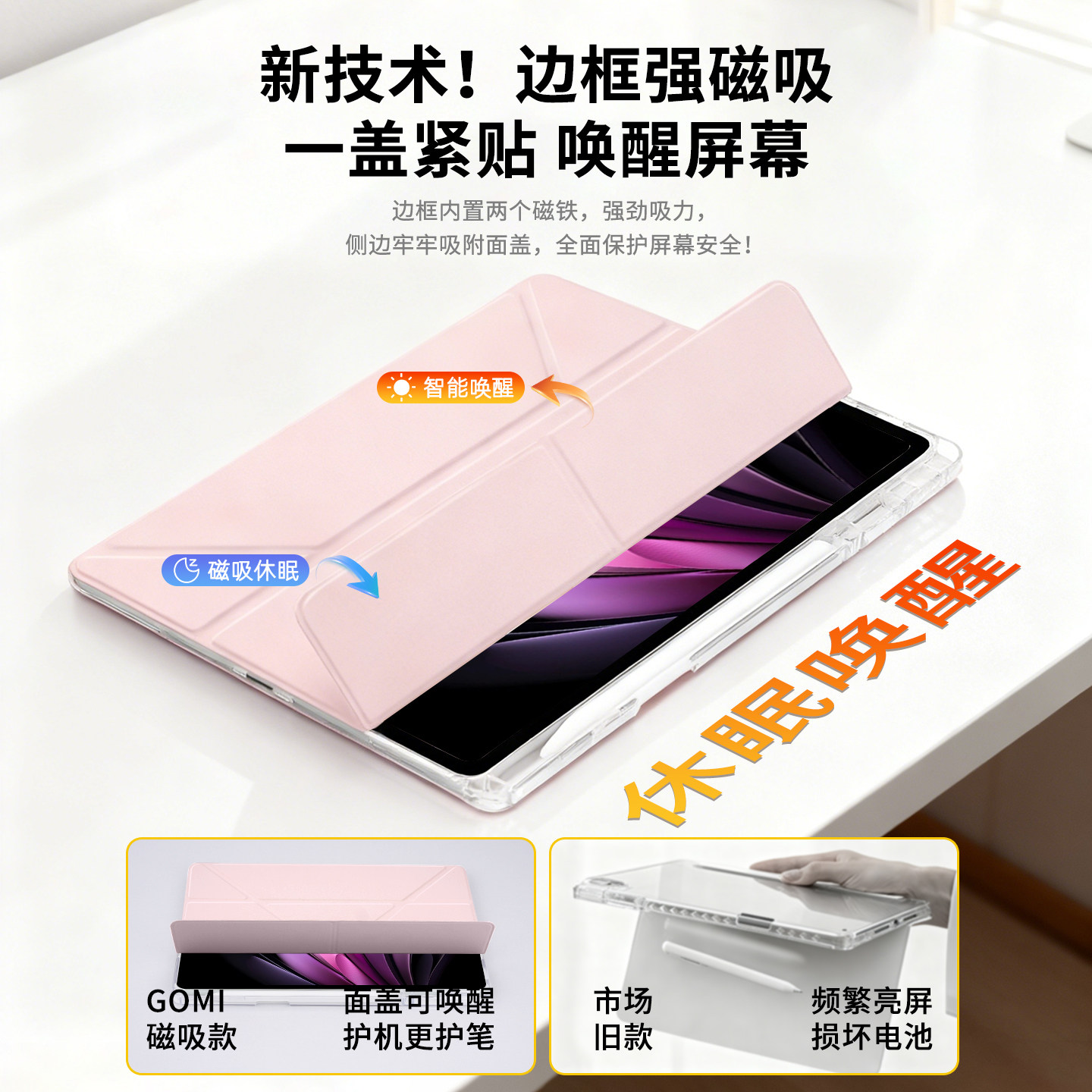 📚 gomi适用于vivopad5pro平板保护套vivoPad3保护壳iQOOPad5Pro电脑3Pro轻薄vivopoad2亚克力SE透明3+Y折防弯摔