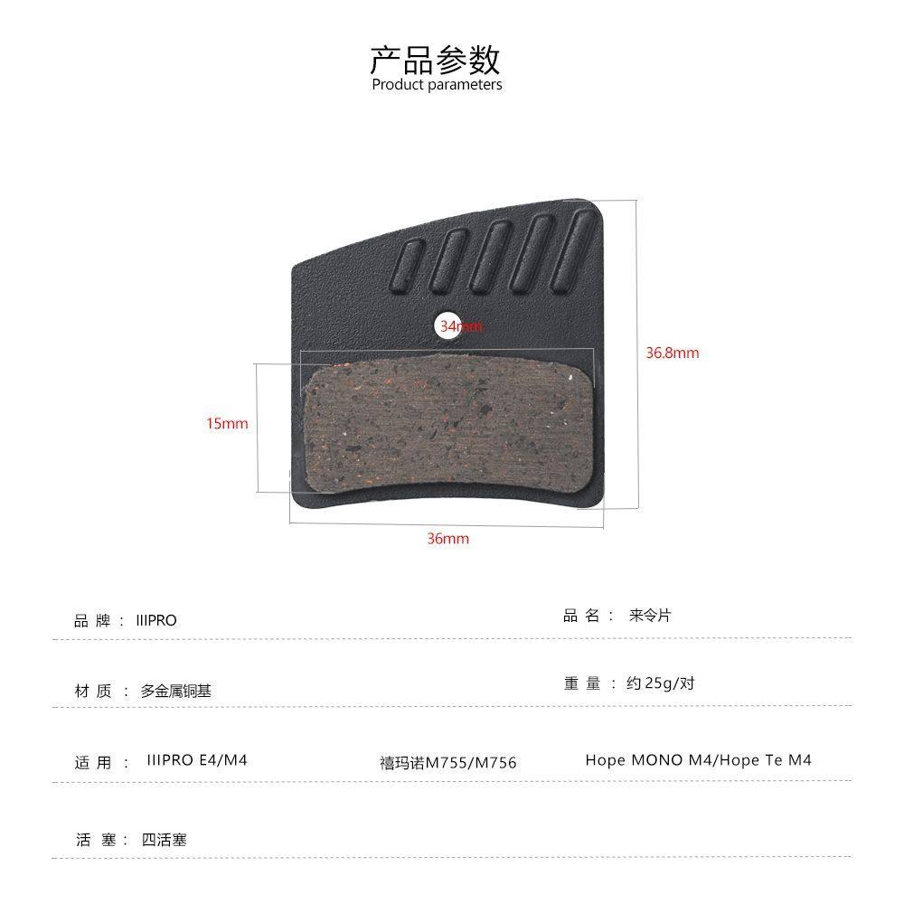 📚 IIIPRO四活塞刹车E4来令片金属散热刹车片适用M755/M756/HOPE等