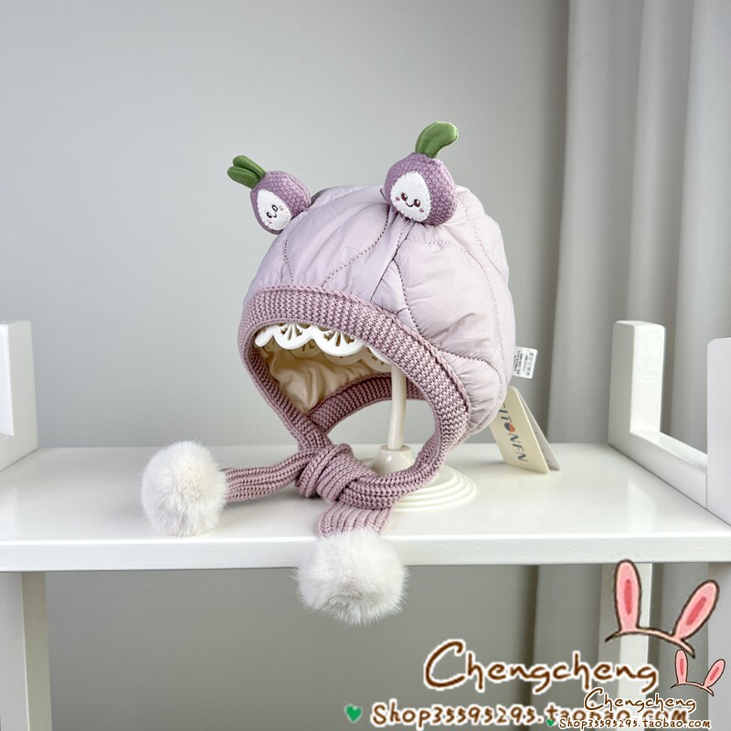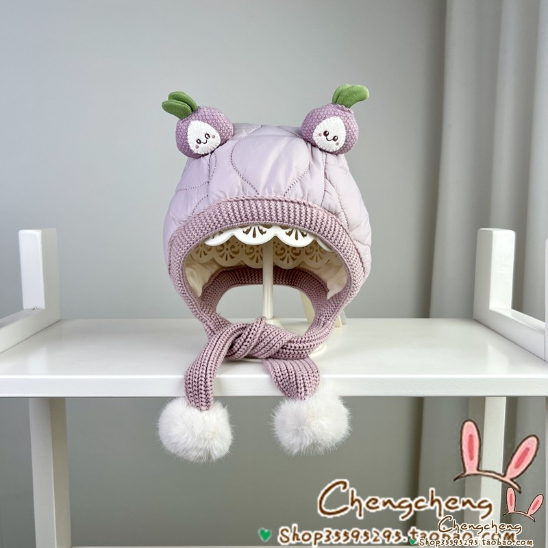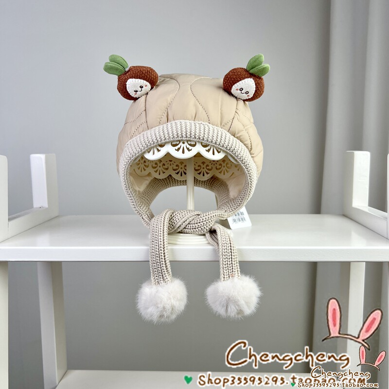 📚 星童坊冬季新款男女宝宝婴儿童夹棉可爱葱明伶俐护耳围巾一体帽子