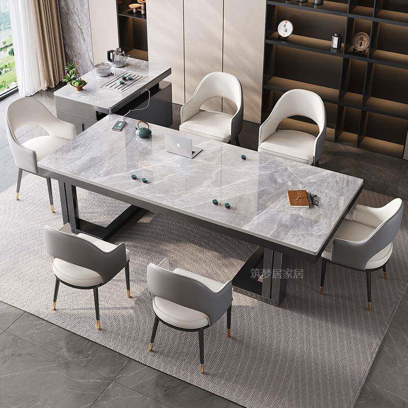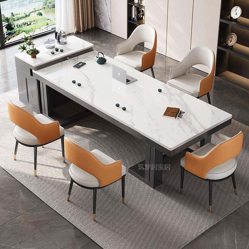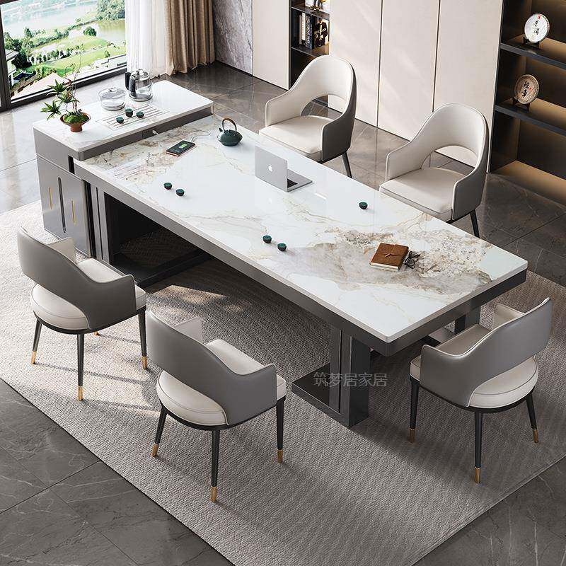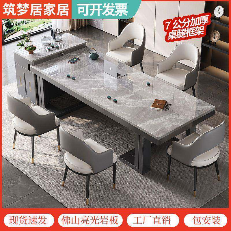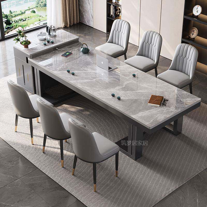 📚 轻奢简约岩板岛台餐桌茶桌组椅合办室公AVR家用烧水感壶一体茶台