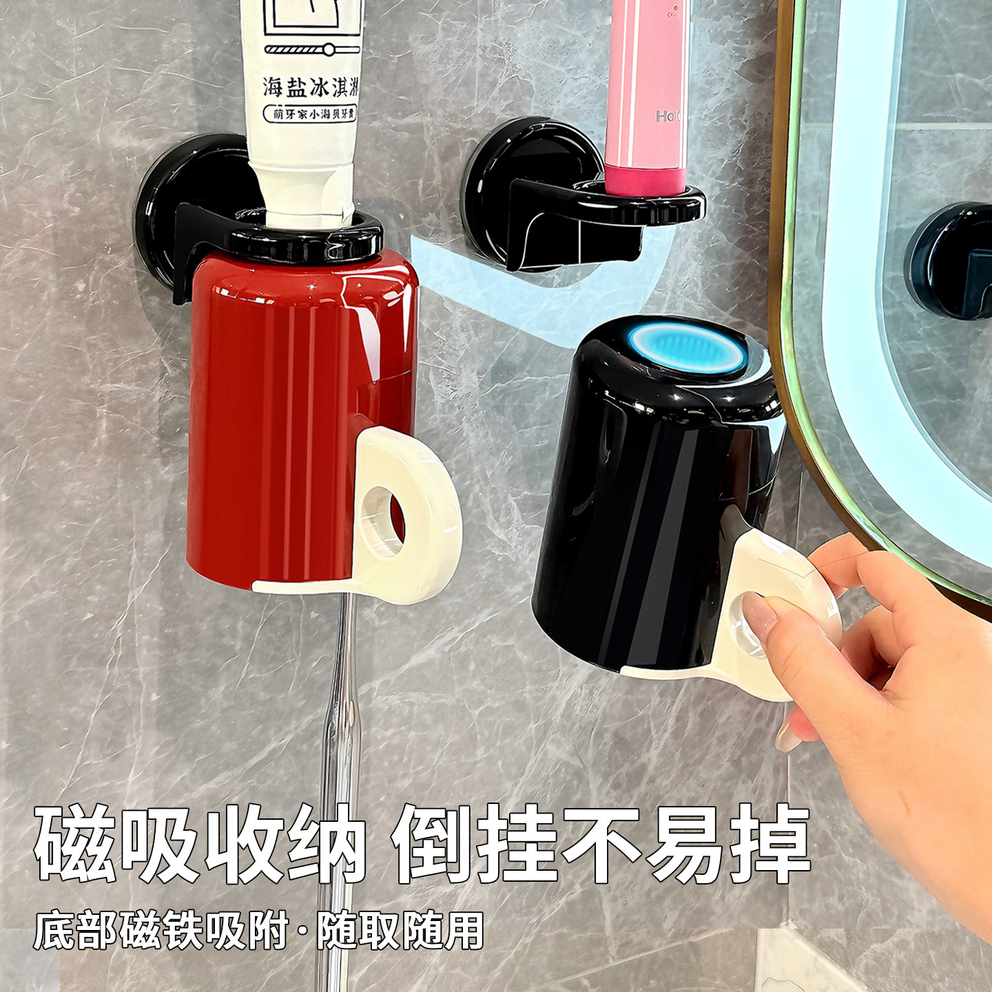 📚 吸盘磁吸漱口杯套装壁挂免打孔倒扣沥水刷牙杯子洗漱杯牙刷置物架