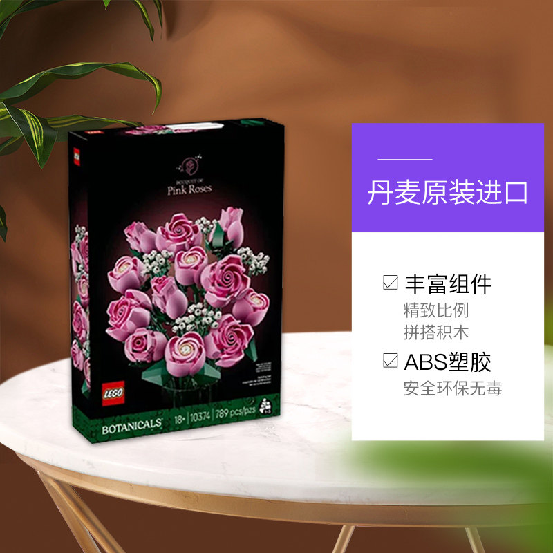 📚 【自营】乐高10374粉玫瑰花束永生花拼装玩具积木送女友礼物摆件