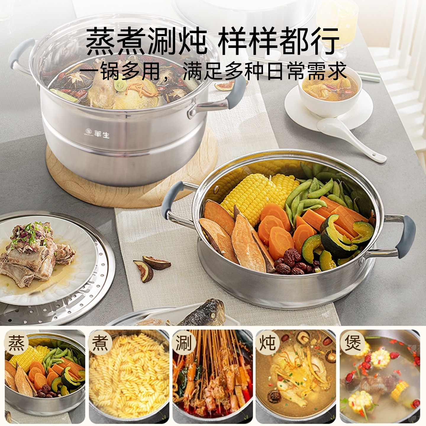 📚 华生蒸锅家用304不锈钢三层加厚蒸笼蒸馒头蒸鱼燃气灶电磁炉汤锅