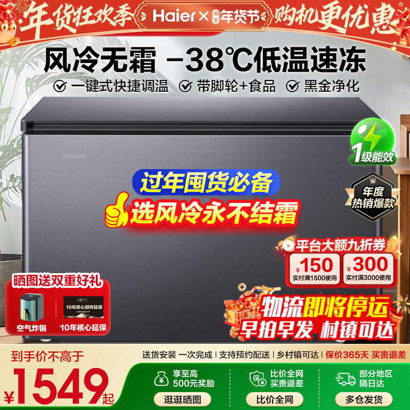 📚 【风冷无霜】海尔冷柜家用商用风冷无霜200升超低温冷冻冷藏冰柜