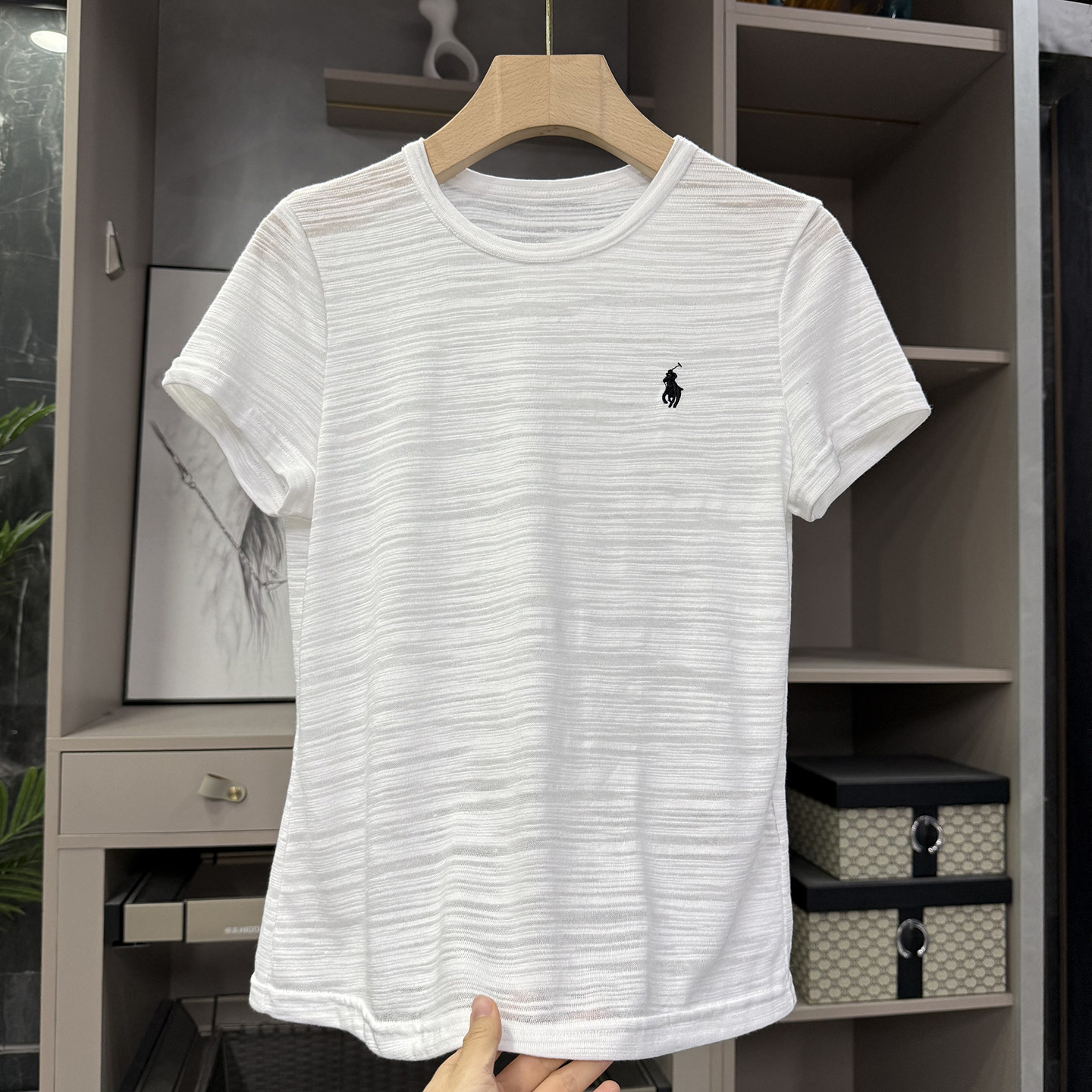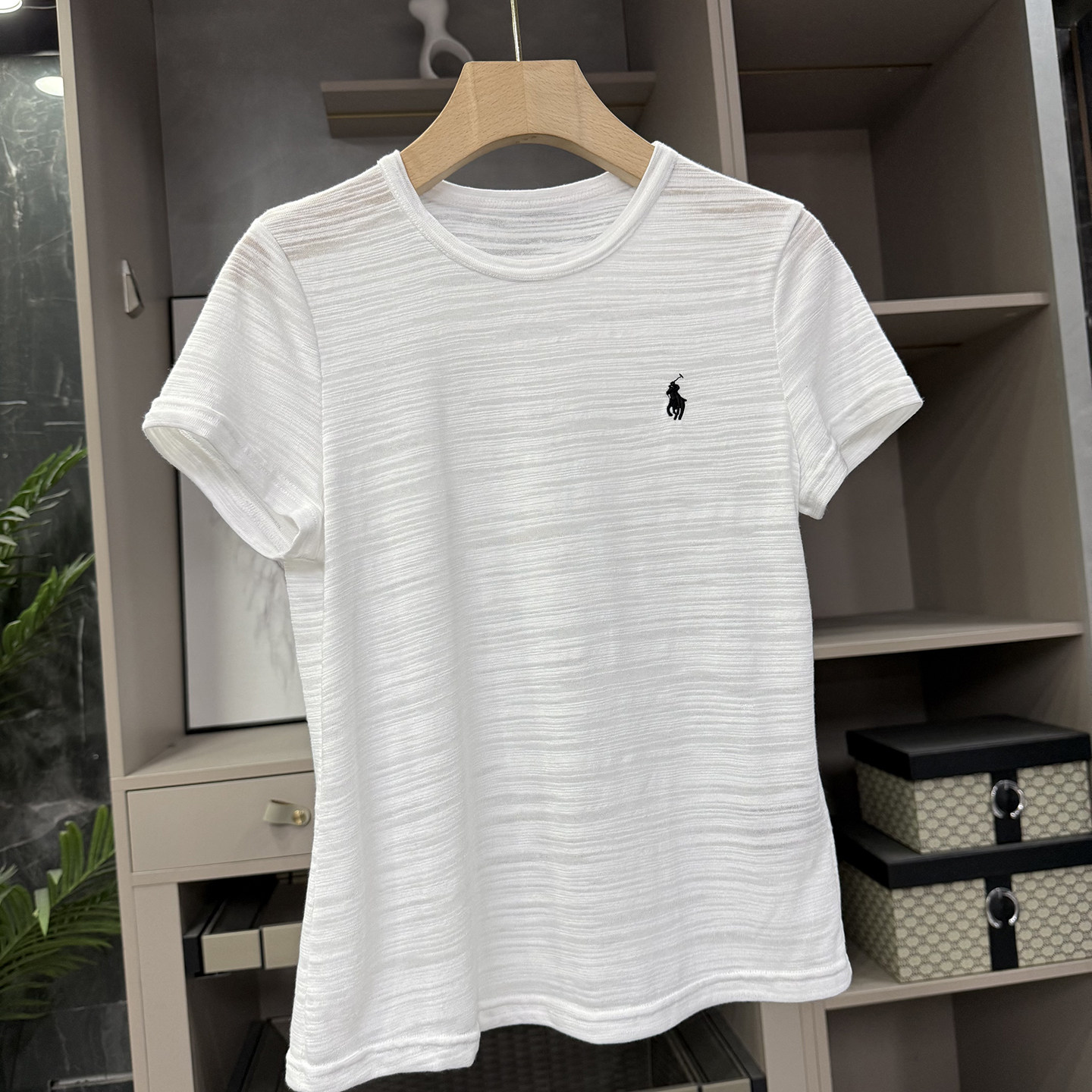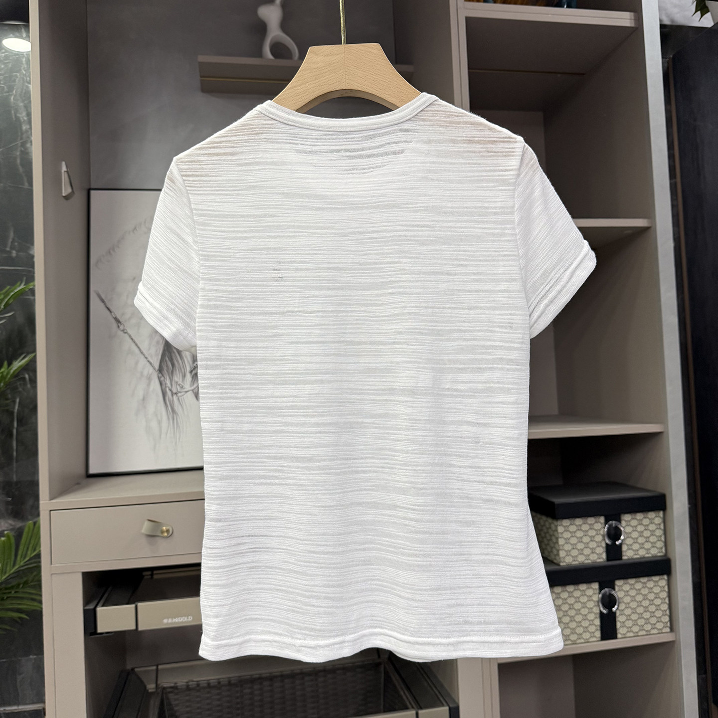 📚 夏天的“显贵密码”!透气亚麻条纹肌理圆领短袖T恤女 62997~ZY