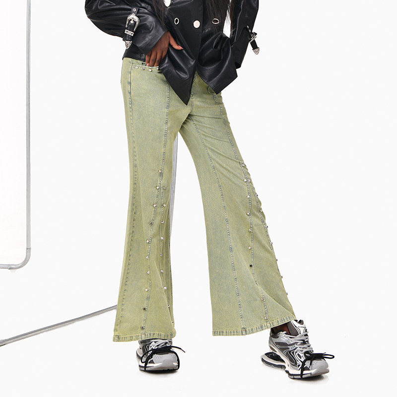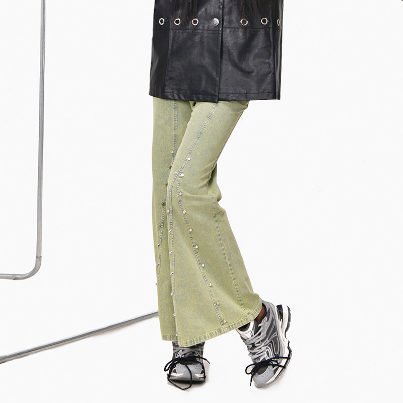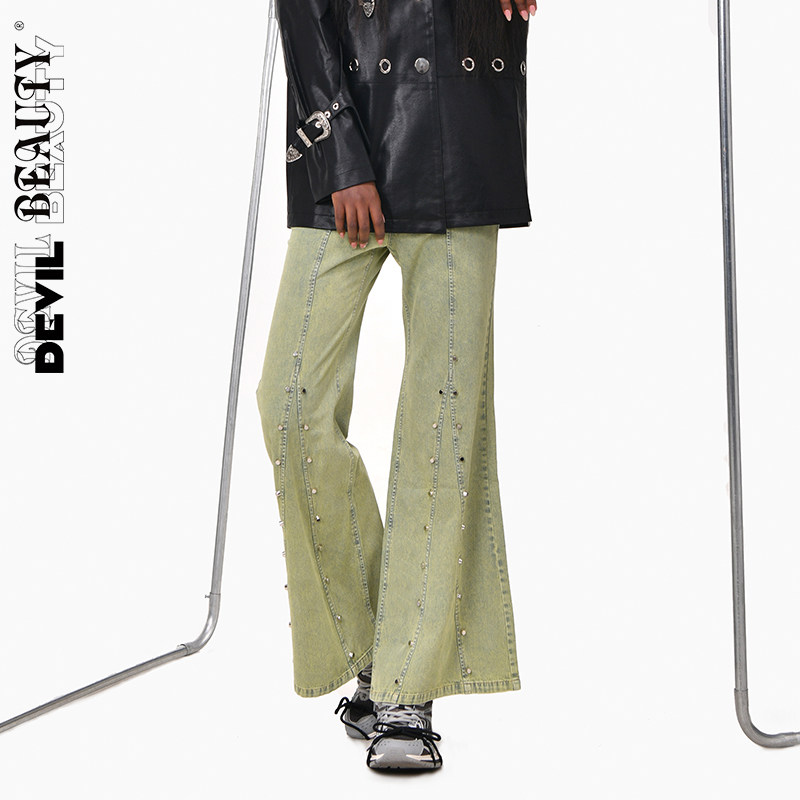 📚 【现货】DevilBeauty新款高腰牛仔裤女水洗喇叭裤复古显瘦休闲裤