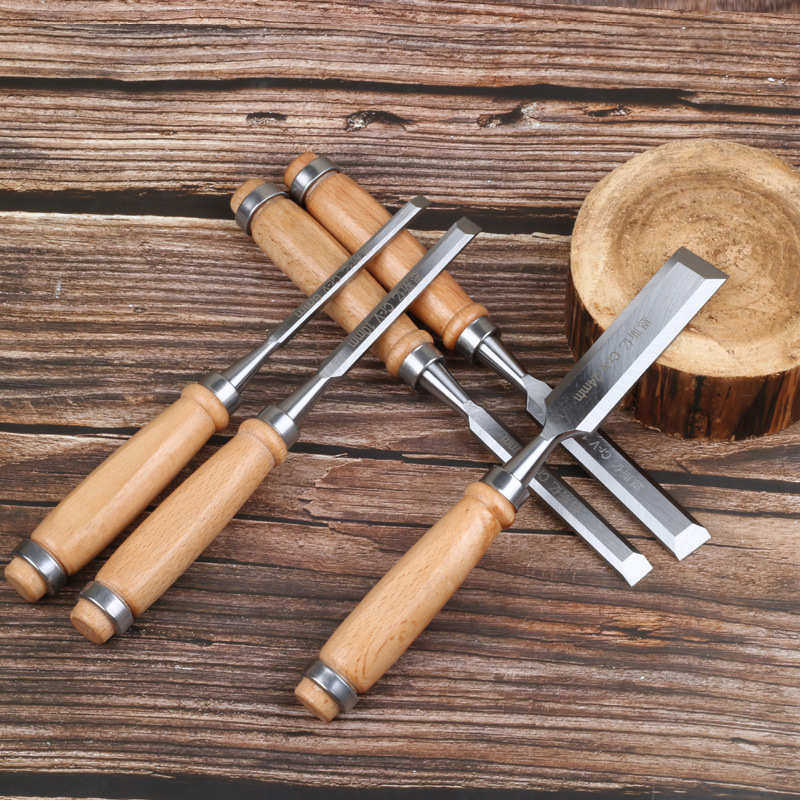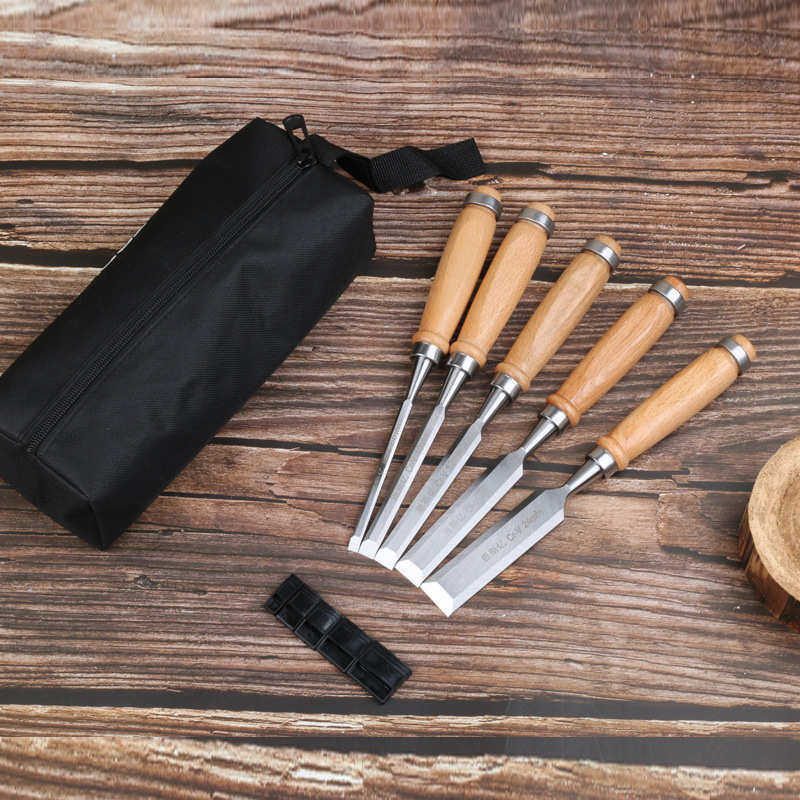 📚 5PCS木柄凿子 木凿扁铲平凿刀木工凿平凿套装木工凿子 木工工具凿