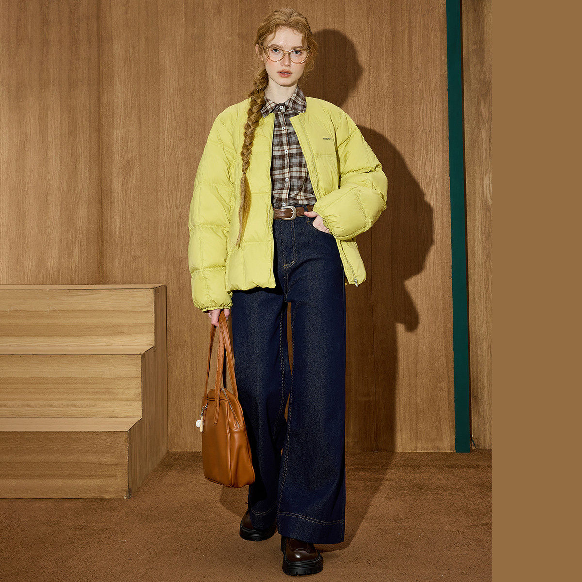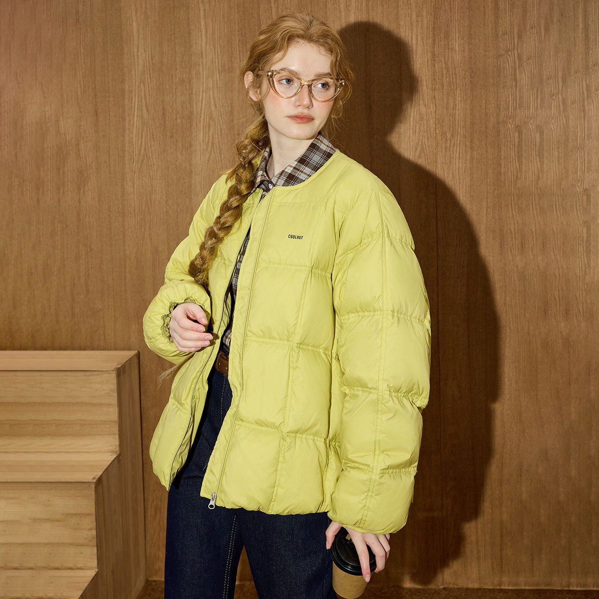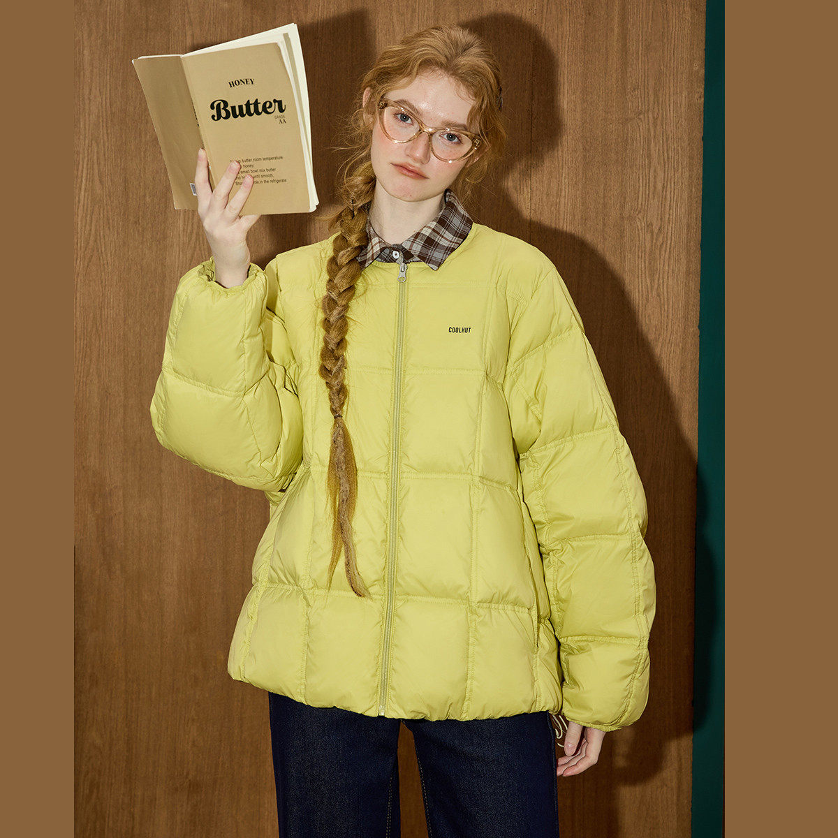 📚 coolhut绿色泡芙羽绒服外套圆领冬装新款加厚短款面包服女