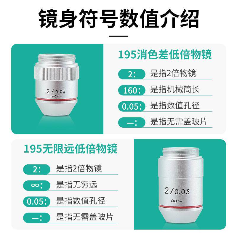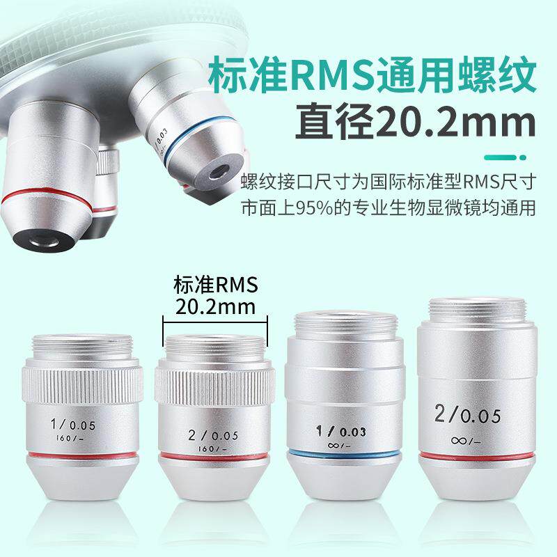 📚 显微镜配件物镜低倍1倍/2倍无穷远专业级消色差高清镀膜RMS接口