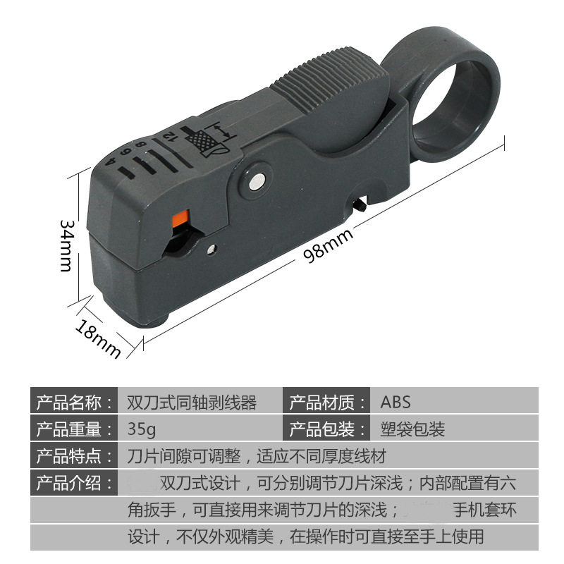 📚 多功能双刀式 同轴电缆剥线钳 网线健康险电视线剥线刀器网络工具