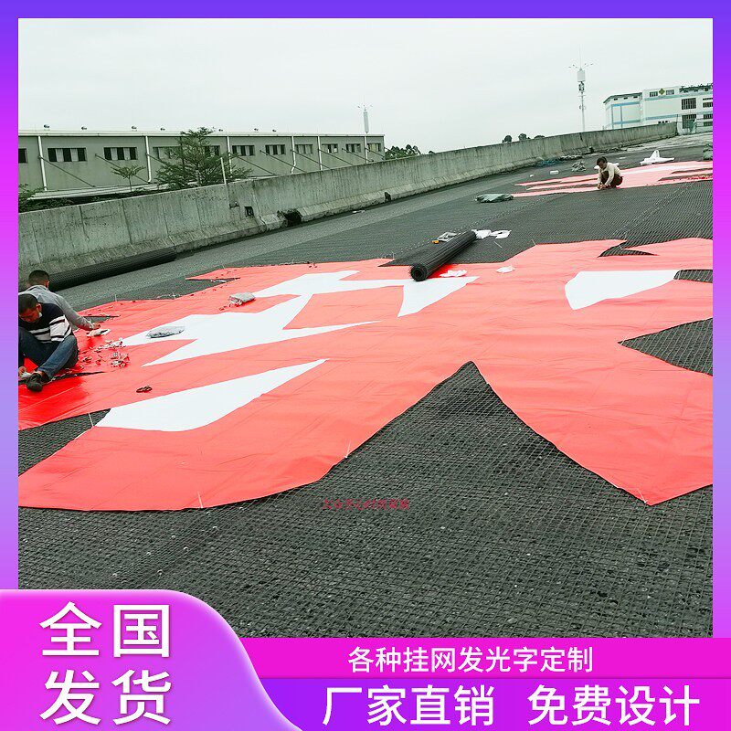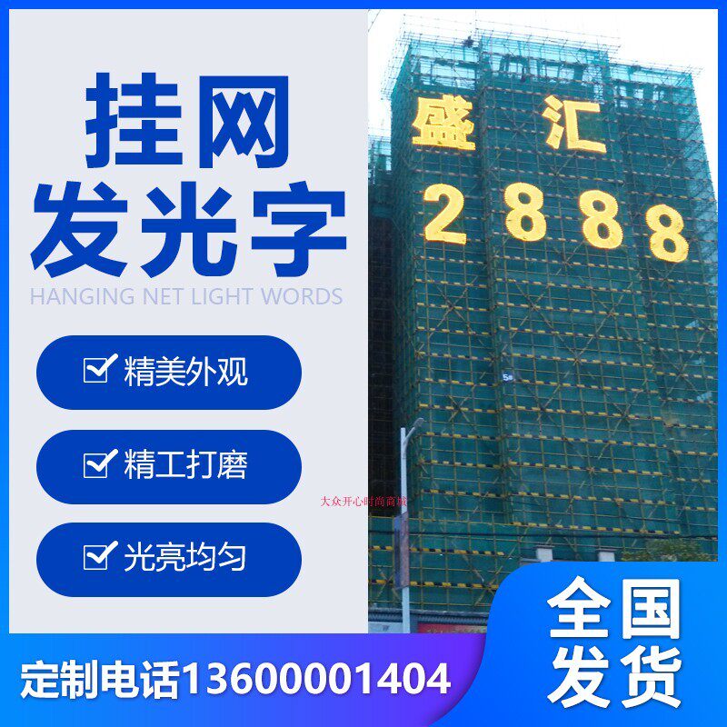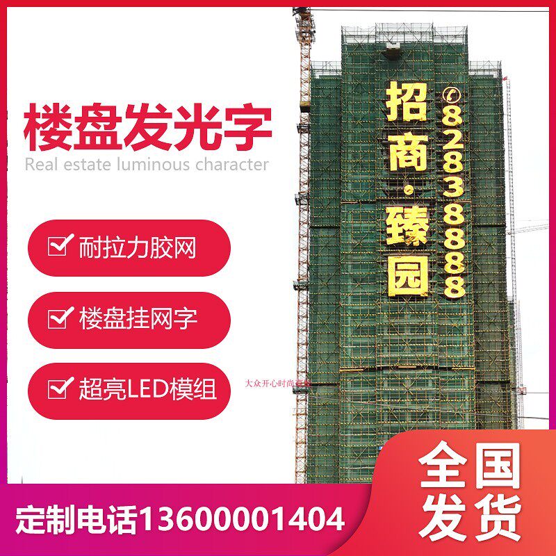 📚 楼盘挂网发光字楼体外墙网格喷绘拉网字地产排栅金布阻燃广告大字