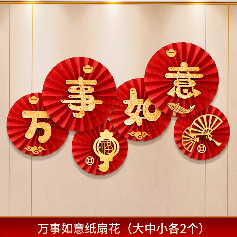 📚 2026春节过年新年装饰挂件挂饰福字纸扇花元旦客厅墙商场场景布置