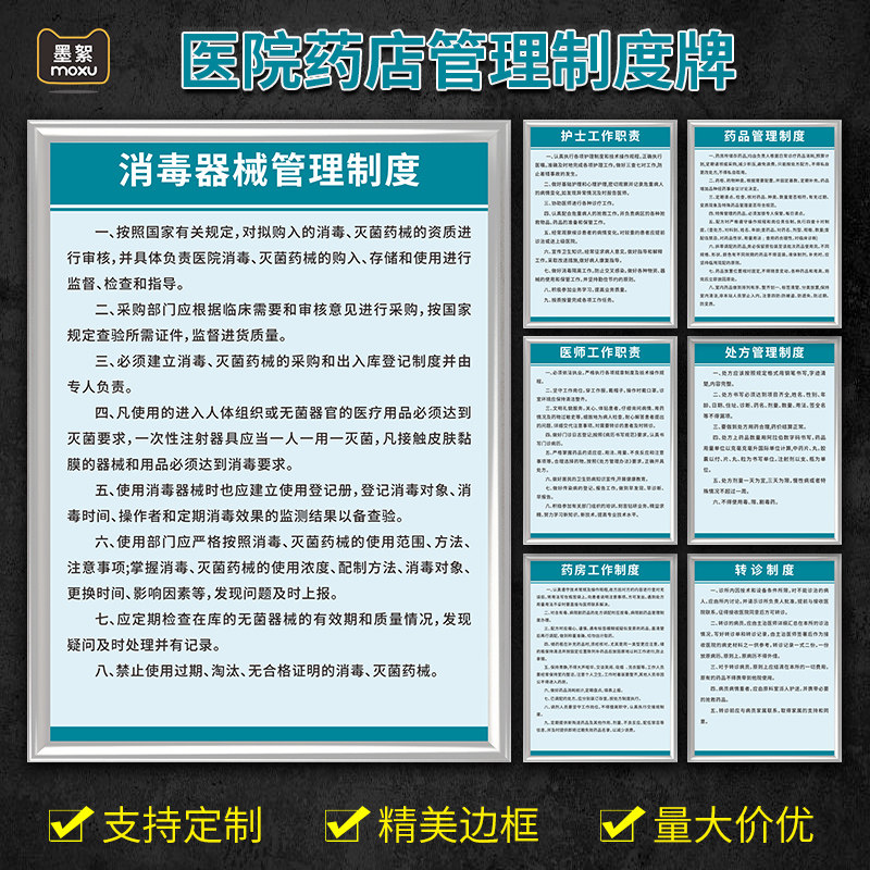 📚 医疗诊所室制度牌药店卫生室治疗室药房观察室化验室工作制度消防隔离医疗废物处理流程图海报挂图墙贴