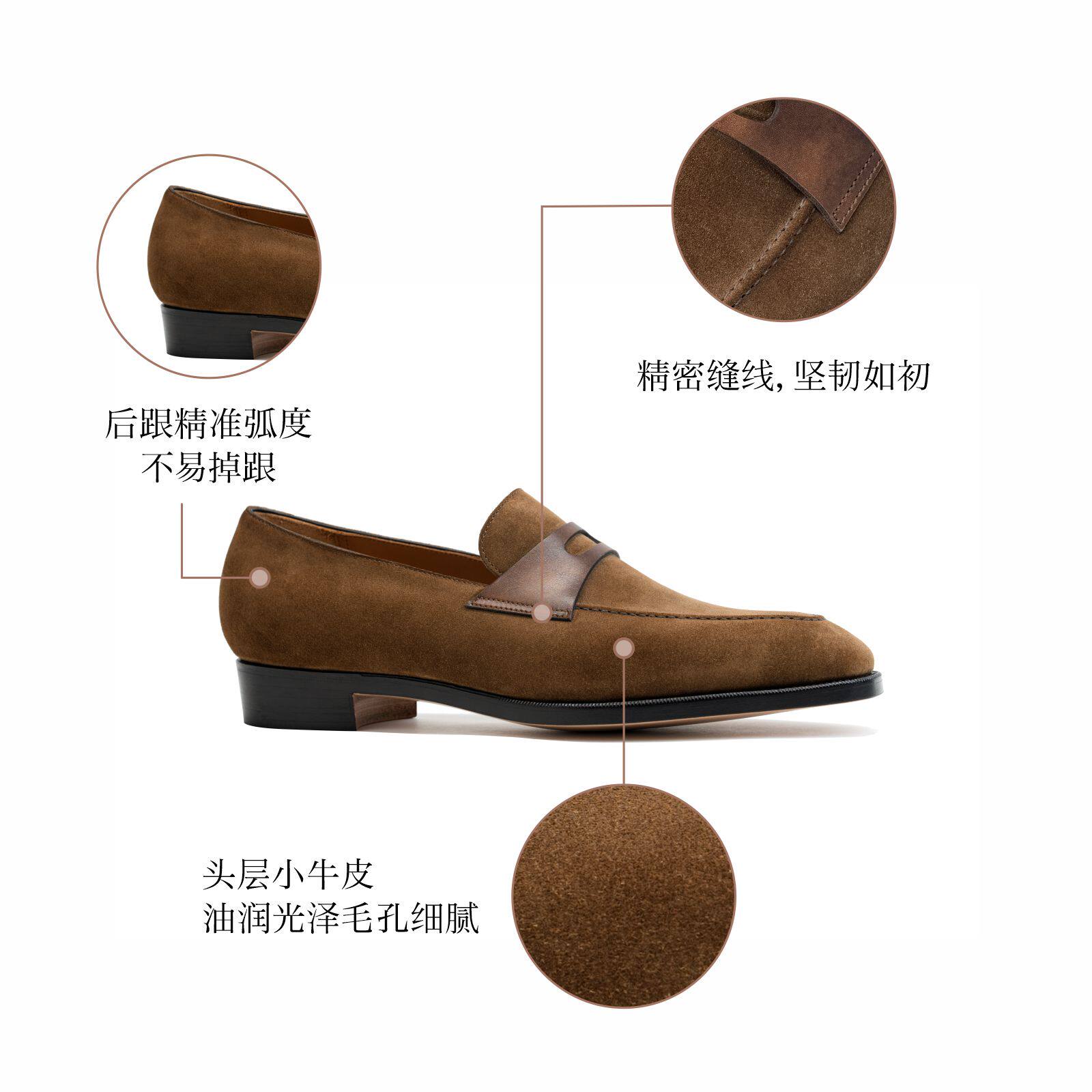 📚 拙履【典藏】流玉方头/圆头反绒小牛皮便士乐福鞋男鞋皮鞋